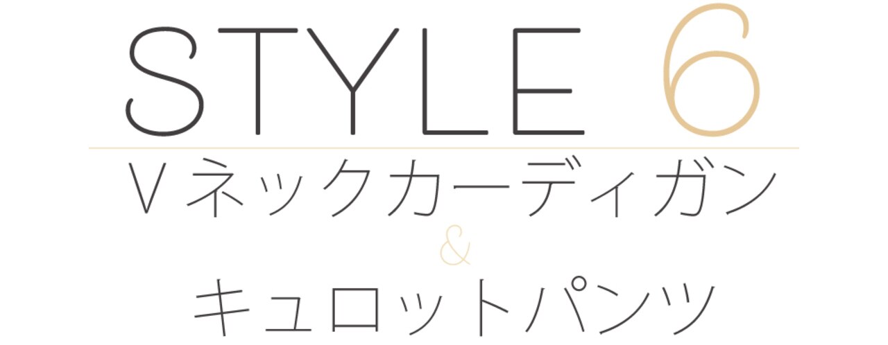 さっと羽織れてロングシーズン活躍するVネックカーディガンに、膝下をすっきりと見せてくれるキュロットパンツでシンプルながらも大人っぽさもあるコーディネートに格上げ。