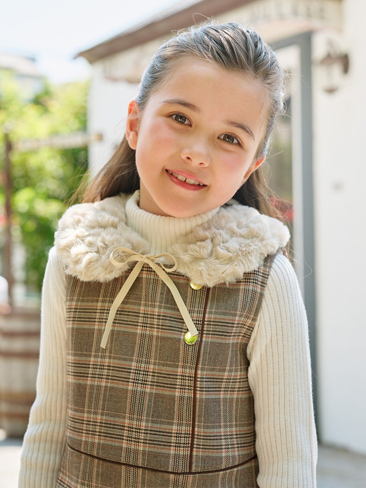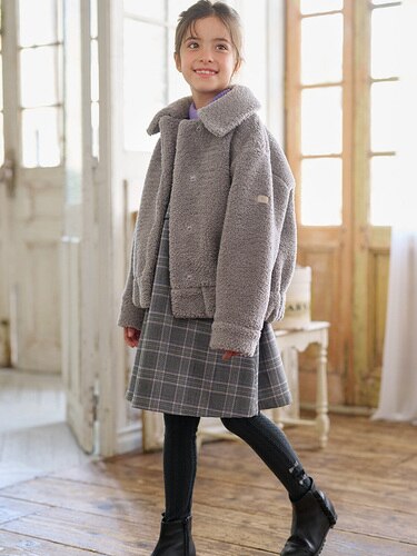 チェックとモコモコのアイテムを使ったコーディネートで気分を上げて。