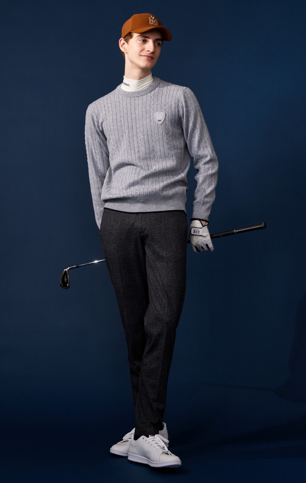 秋といえばニット、これを着たら一気にシーズンムード高まるアイテム。インナーにシャツやモックネックを入れてレイヤード、さらに季節が進めばベストやブルゾンを羽織れる、シーズン通して着用可能な一番使いやすい肉感。擦れによるピリングを軽減すべく、そで下と脇は異素材を合わせたところも23区GOLFらしさが光るポイントです。
