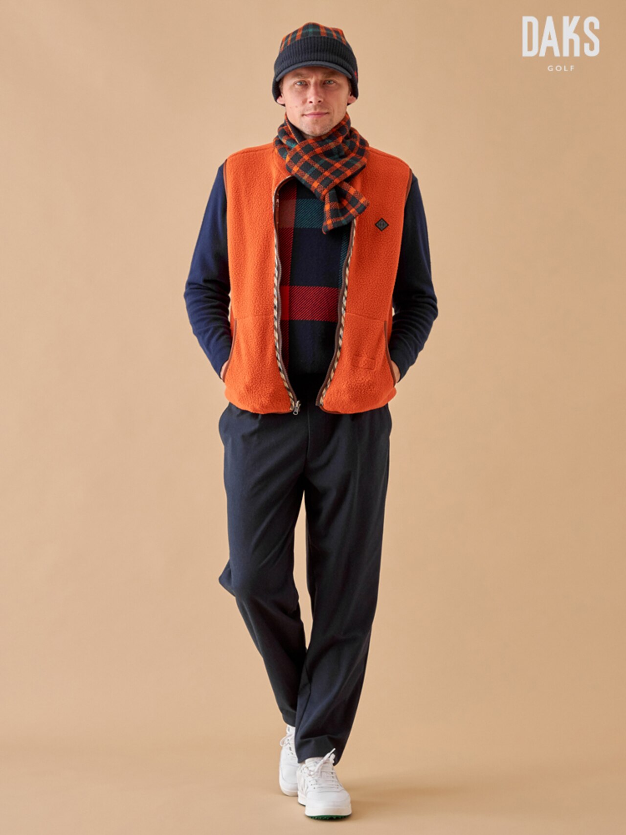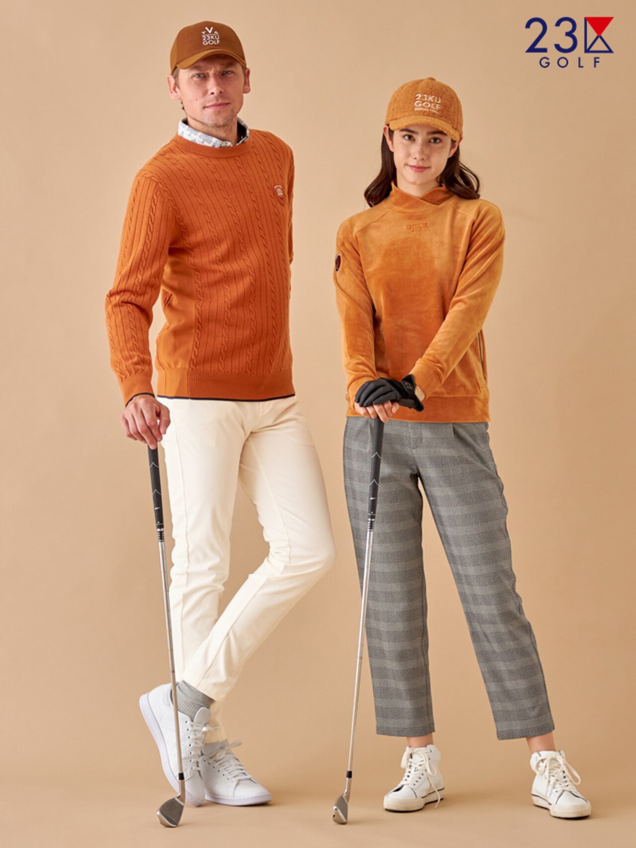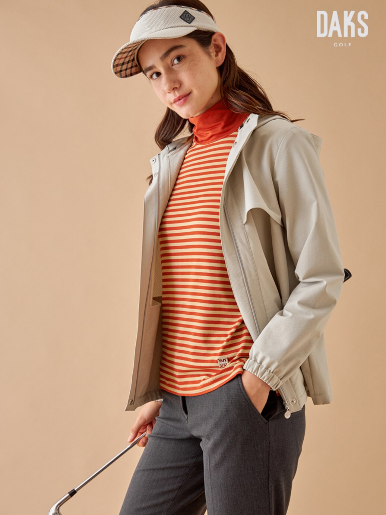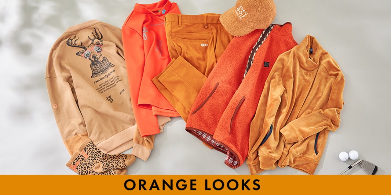 季節感とアクティブさのあるオレンジは今シーズンの注目カラーの一つ。すっかりゴルフウェアの定番色になったベージュと合わせるのが旬。だけど一点投入でも、華やかさと存在感ばっちり。1アイテムはクローゼットに揃えておきたい粋な色なんです◎