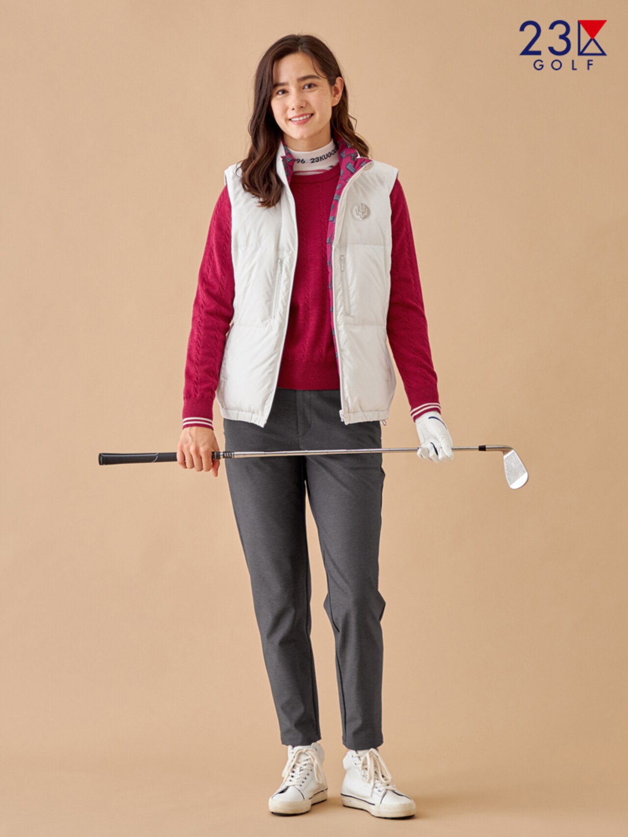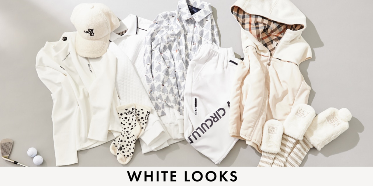秋冬のゴルフだって忘れたくないのは清潔感。そして大人心もおしゃれ心も表現するのにぴったりな【WHITE】。全身をワントーンでまとめればよりクリーンに、黒やグレーを加えればほんのりスパイシーに。どんなテイストにも振れる魔法のようなカラーがWHITEの魅力なんです◎