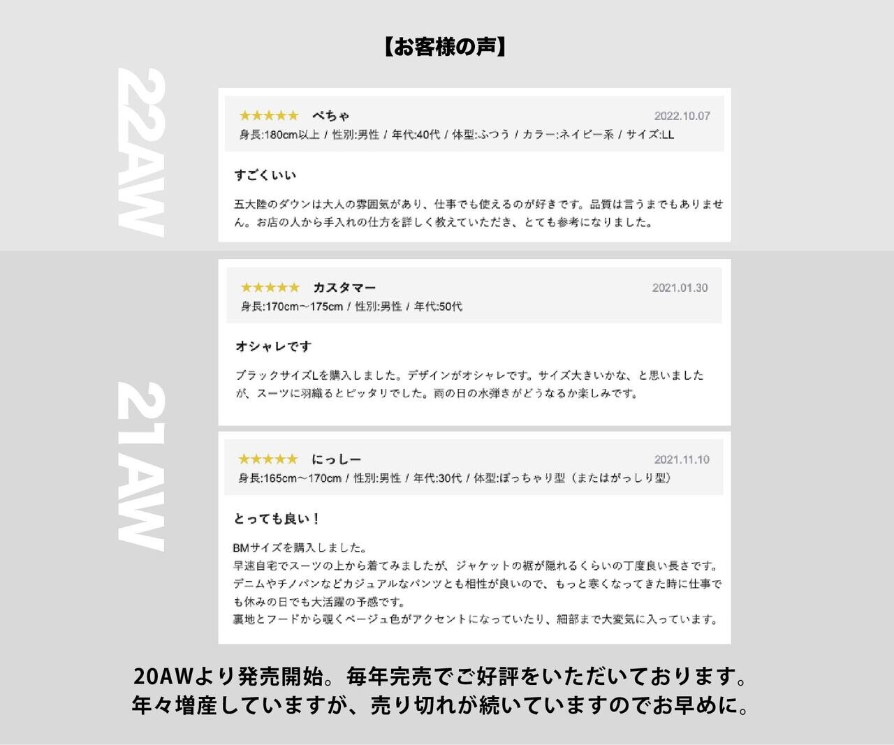 GOTAIRIKUのアイデンティティである『ビジネスクロージング』の為のダウンジャケット。