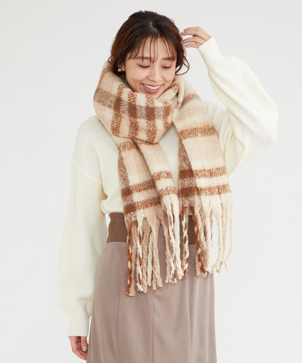 大柄チェックで大人カジュアルな印象に加え、大き目のサイズ感で小顔効果抜群。