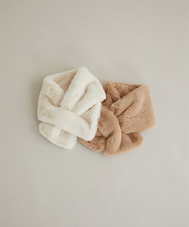 裏表で2種類のフェイクファーが楽しめるデザインに。異なるフェイクファーの表情をコーデや気分に合わせて変えられ、差し込み式で着脱簡単なのも嬉しいポイント。