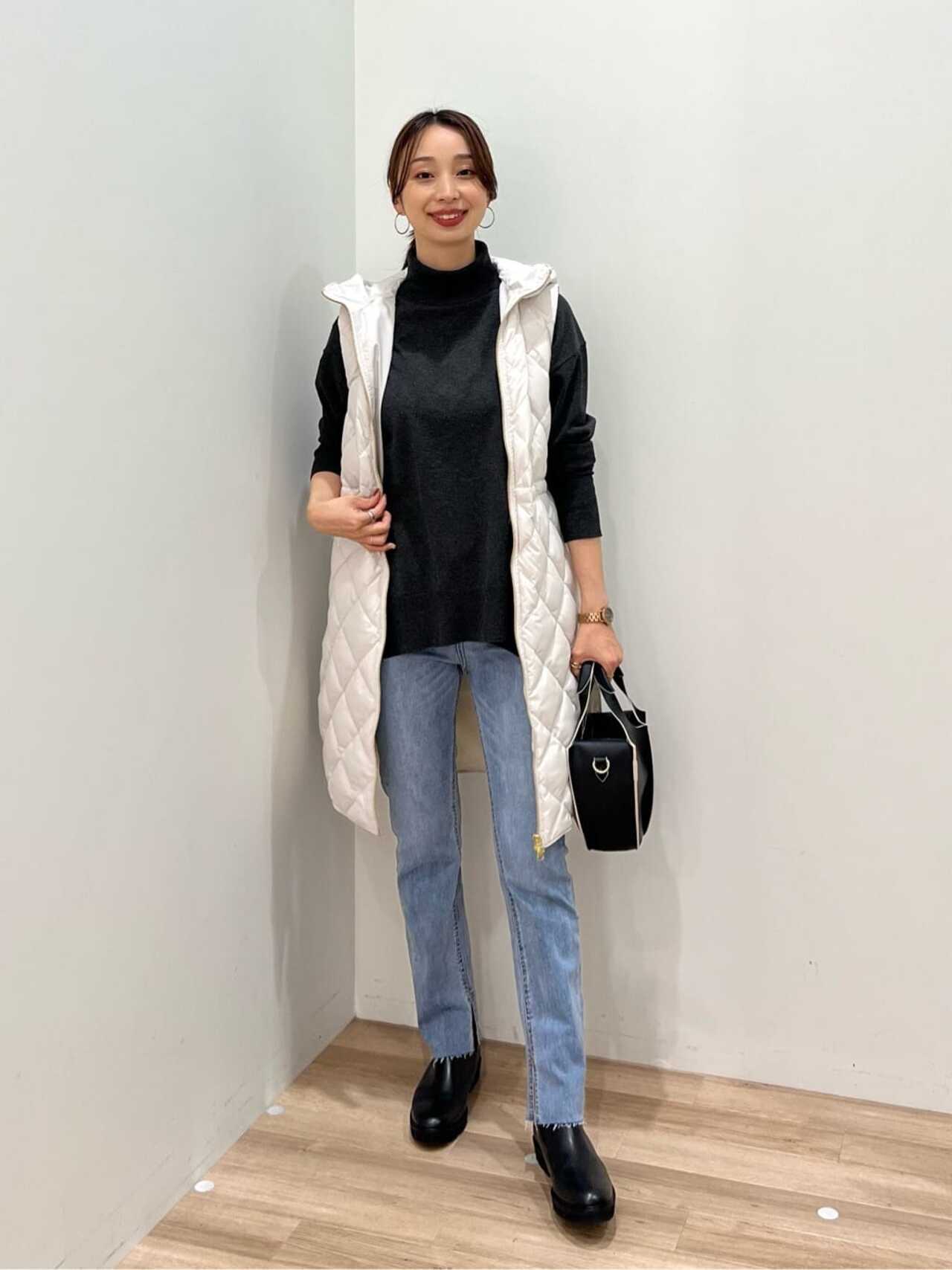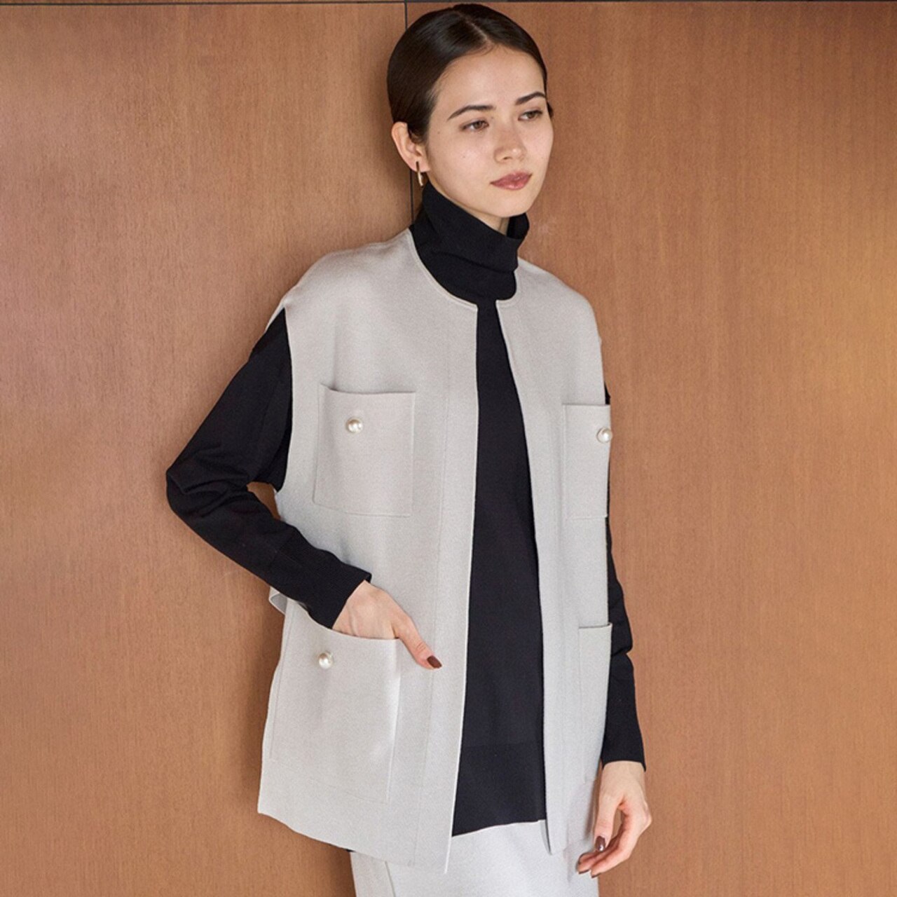 ジレを羽織ってより縦のラインを際立たせればスタイルアップ!