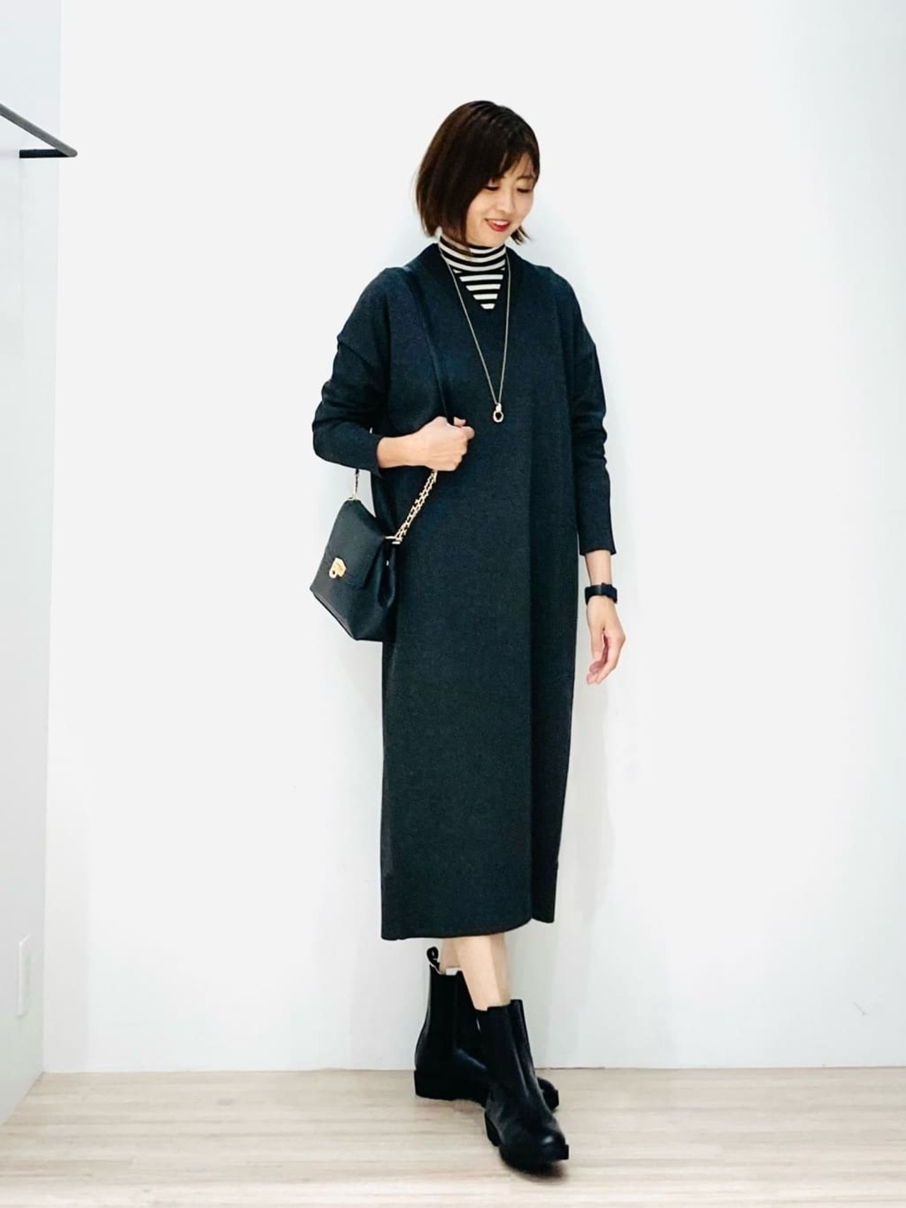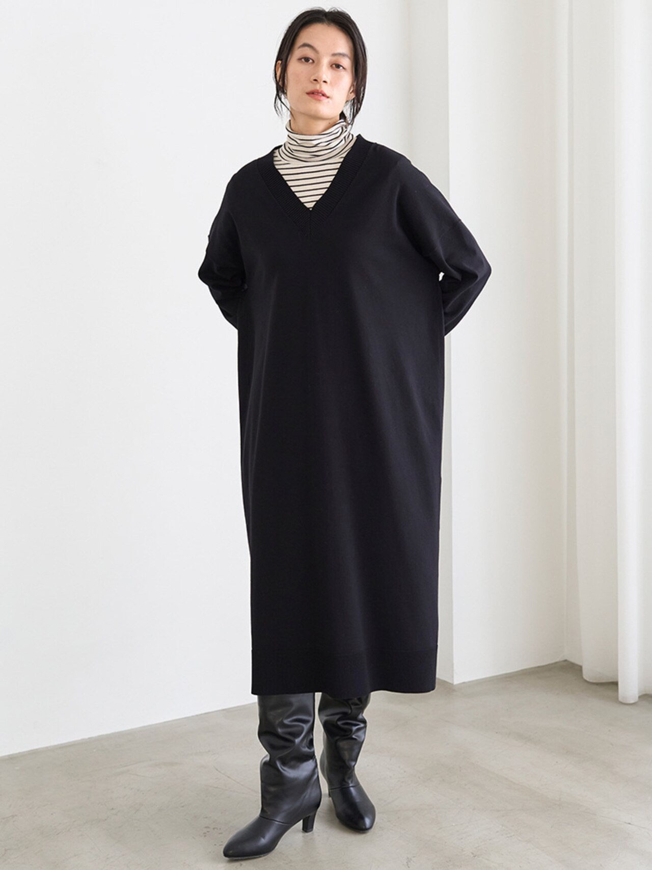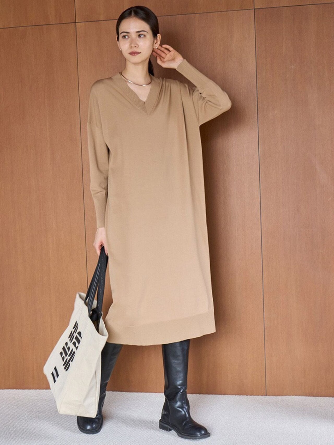 リラックスしながらもキレイめ見えするVネックニットワンピース。