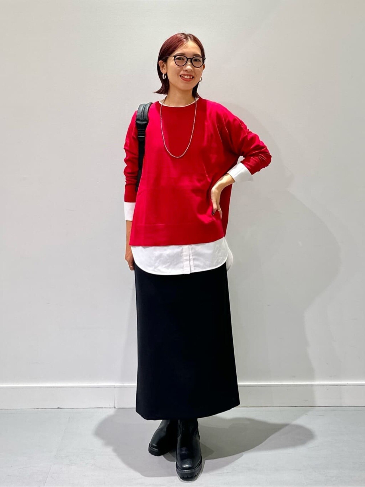 サイドにスリットが入っているので、インナーをレイヤードしてもきれいに映えます。