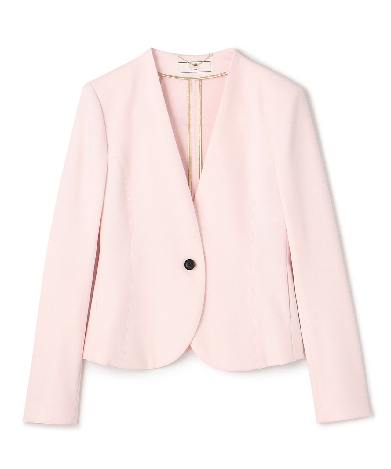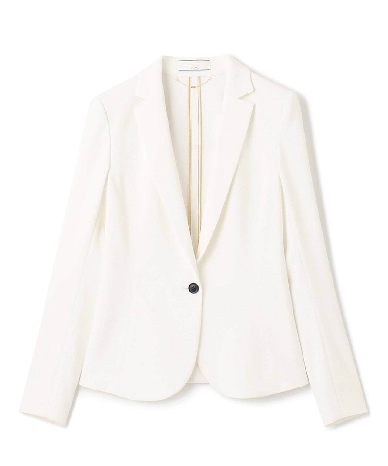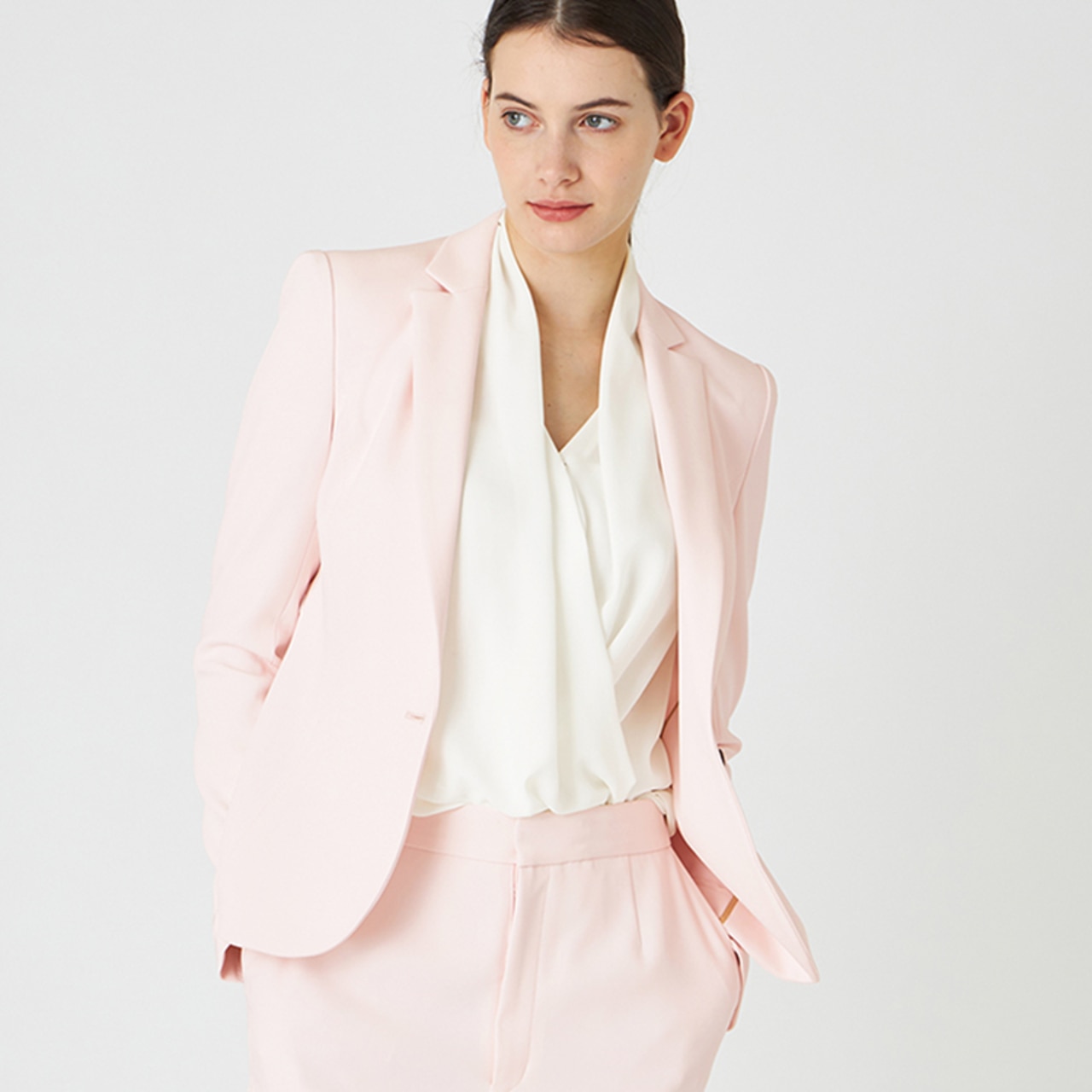 ボディに沿うようなストレッチ感と美しいシルエットが評判、ウォシャブルでケアもしやすいセットアップです。