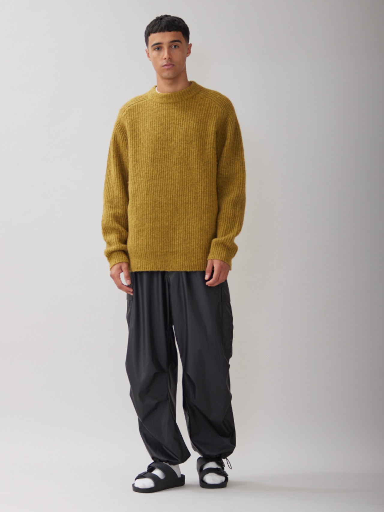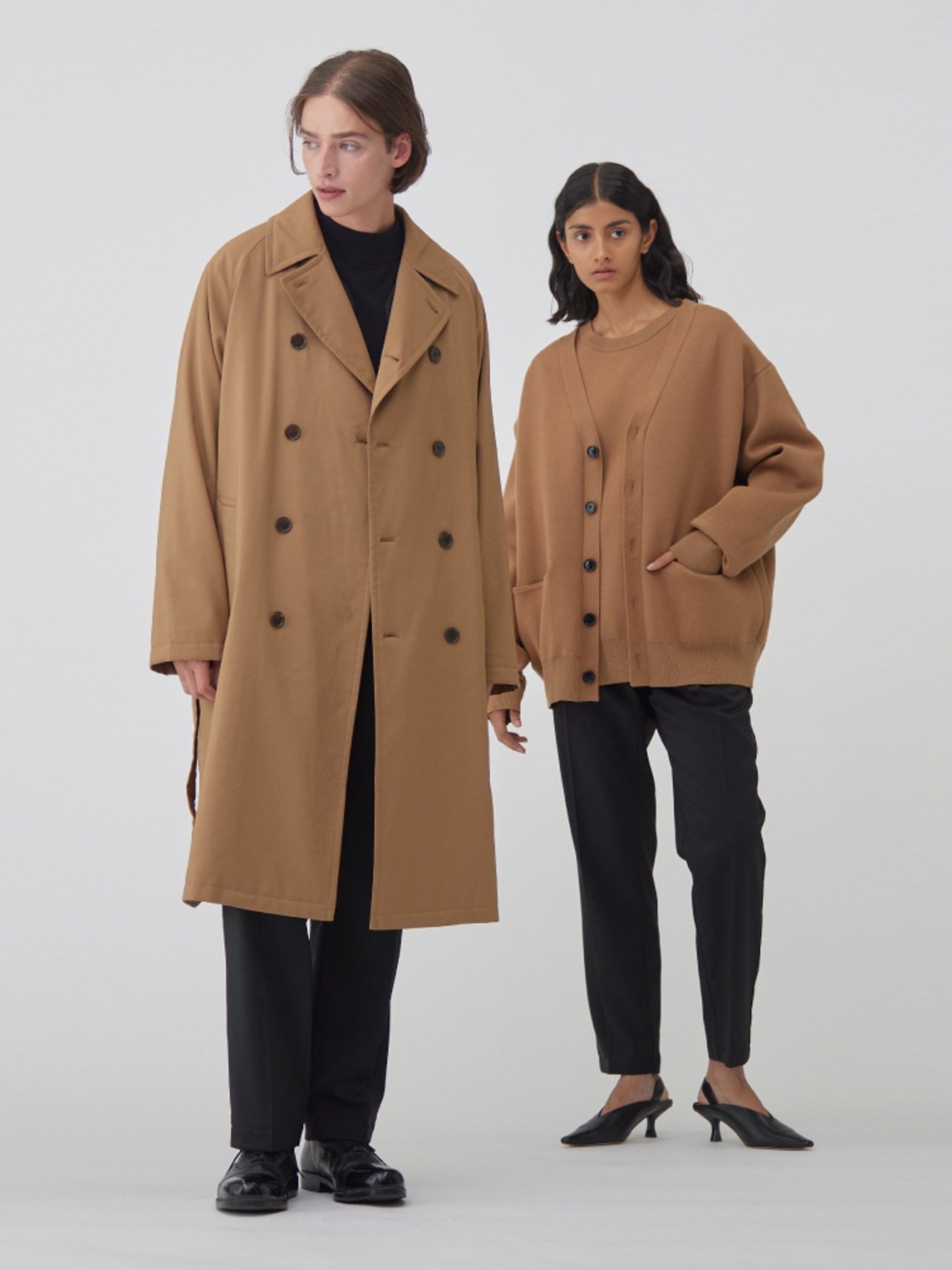 今年の冬は、表地は撥水、裏地には帝人開発素材起毛メッシュ裏地の「OCTA(オクタ)」を使用し保温性を確保した「ウールライク」のパンツやアウターをベースにしたスタイリングがおすすめ。