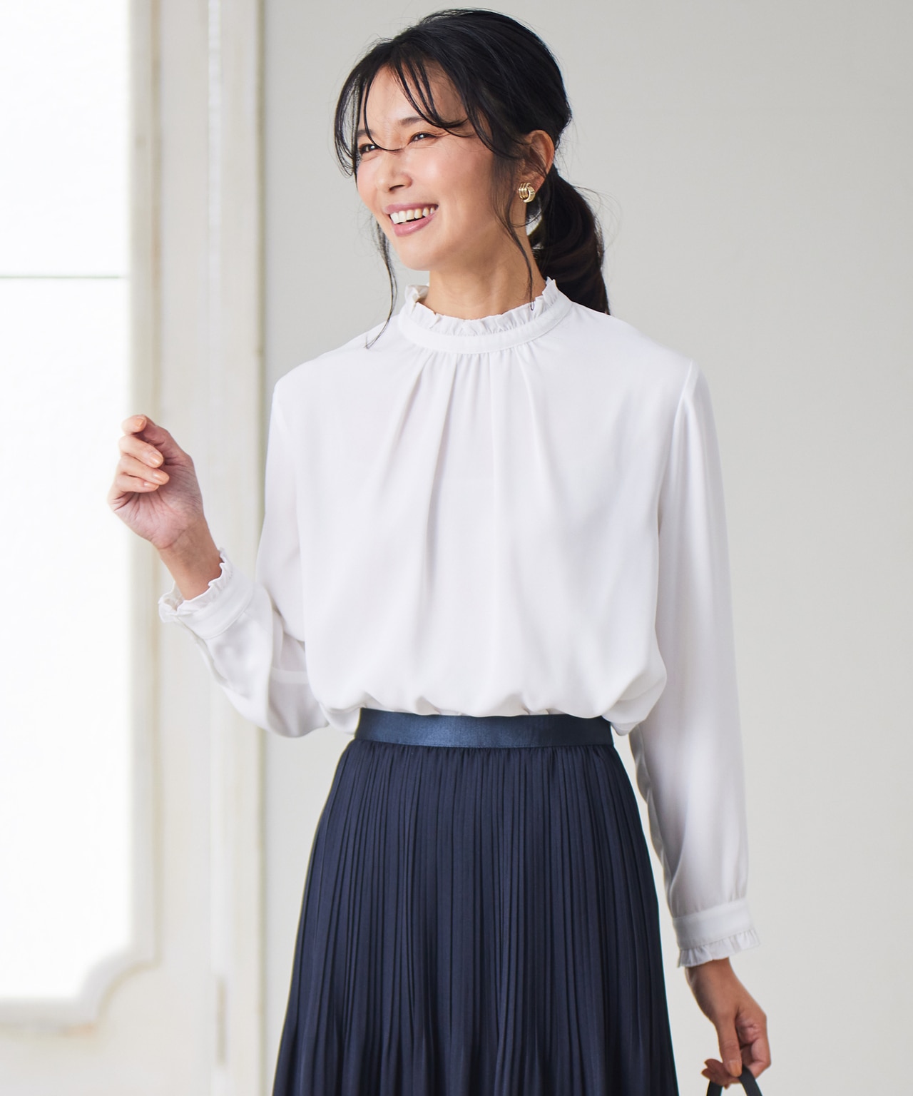 ジャケットやアウターのインナーとしても活躍するブラウスやカットソー。胸元からさり気なく感じるデザインで1枚でも好印象が叶います。