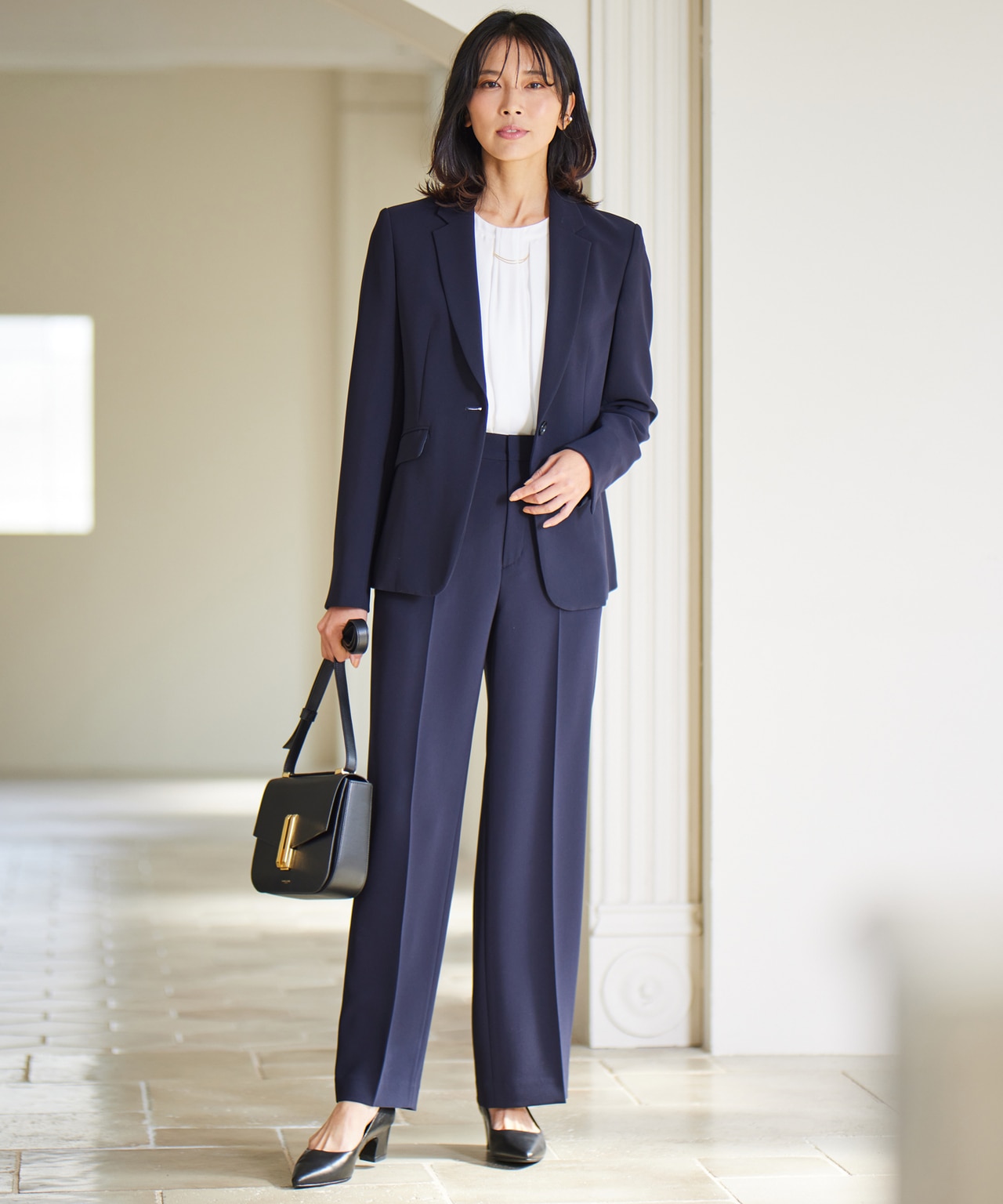 動きやすくどんな場面でも自分らしくいられるパンツスタイル。ジャケットを羽織っても、ブラウスだけであわせても品よく決まる汎用性の高いこだわりシルエットが、エレガントで知的な雰囲気をくれる。華やかな日にはアクセサリー使いでさりげなく自分らしさをプラスするのがおすすめ。