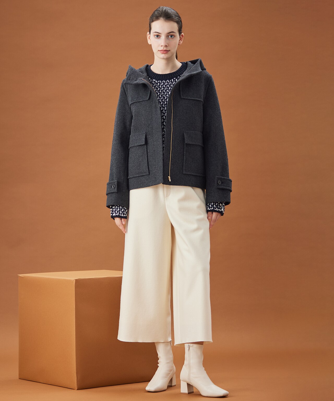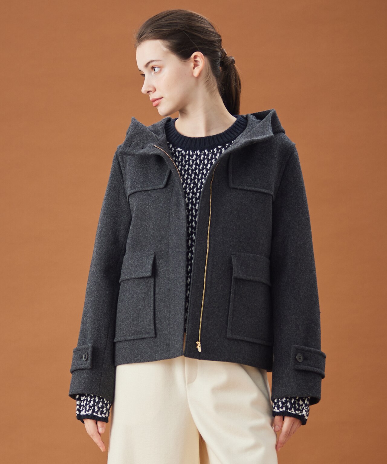 気軽に羽織れて、様々なスタイリングに合わせやすいフード付きショートコートをご紹介します!EcruとC.Grayの雰囲気の違う2色をご用意しました。ぜひご覧ください。