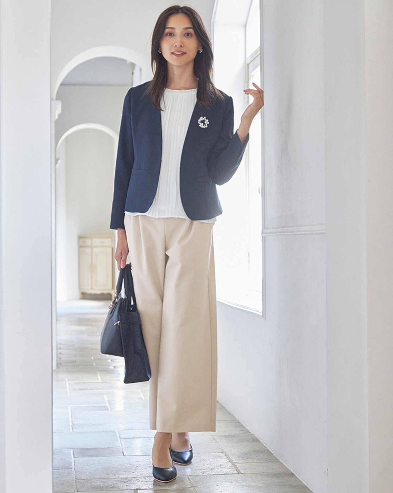 【WEB限定】ダブルクロスストレッチ Vネックノーカラージャケット