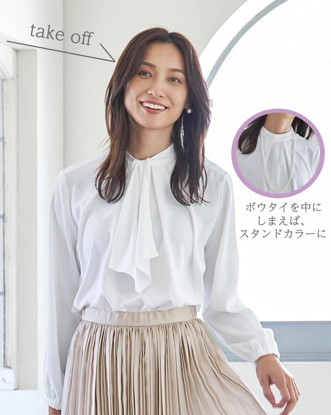 【2WAY/洗濯機可能】華やぎボウタイブラウス