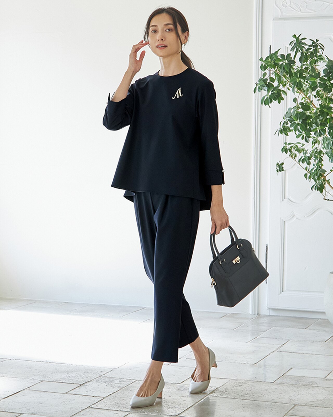 【洗濯機可/ウエストゴム/ストレッチ/セットアップ可】イージィケアストレッチワイドパンツ