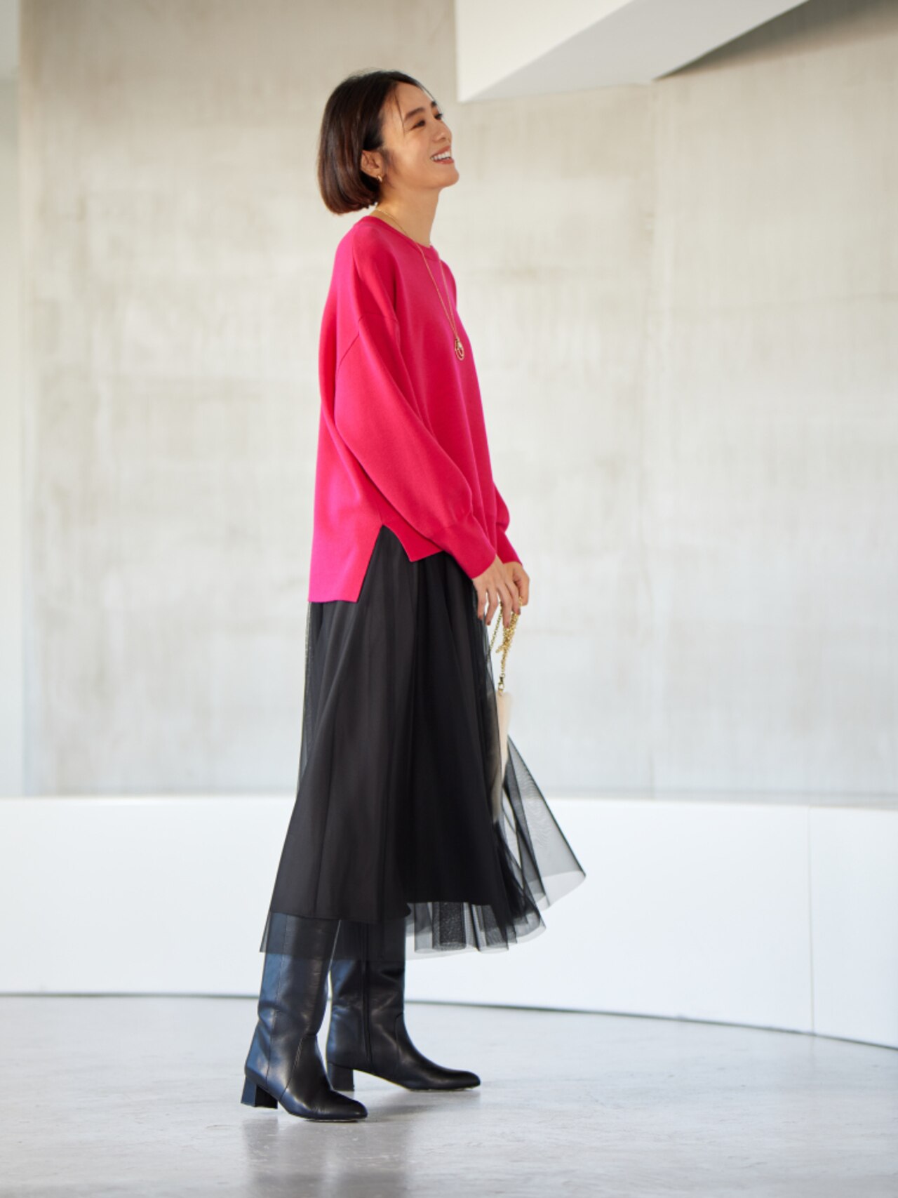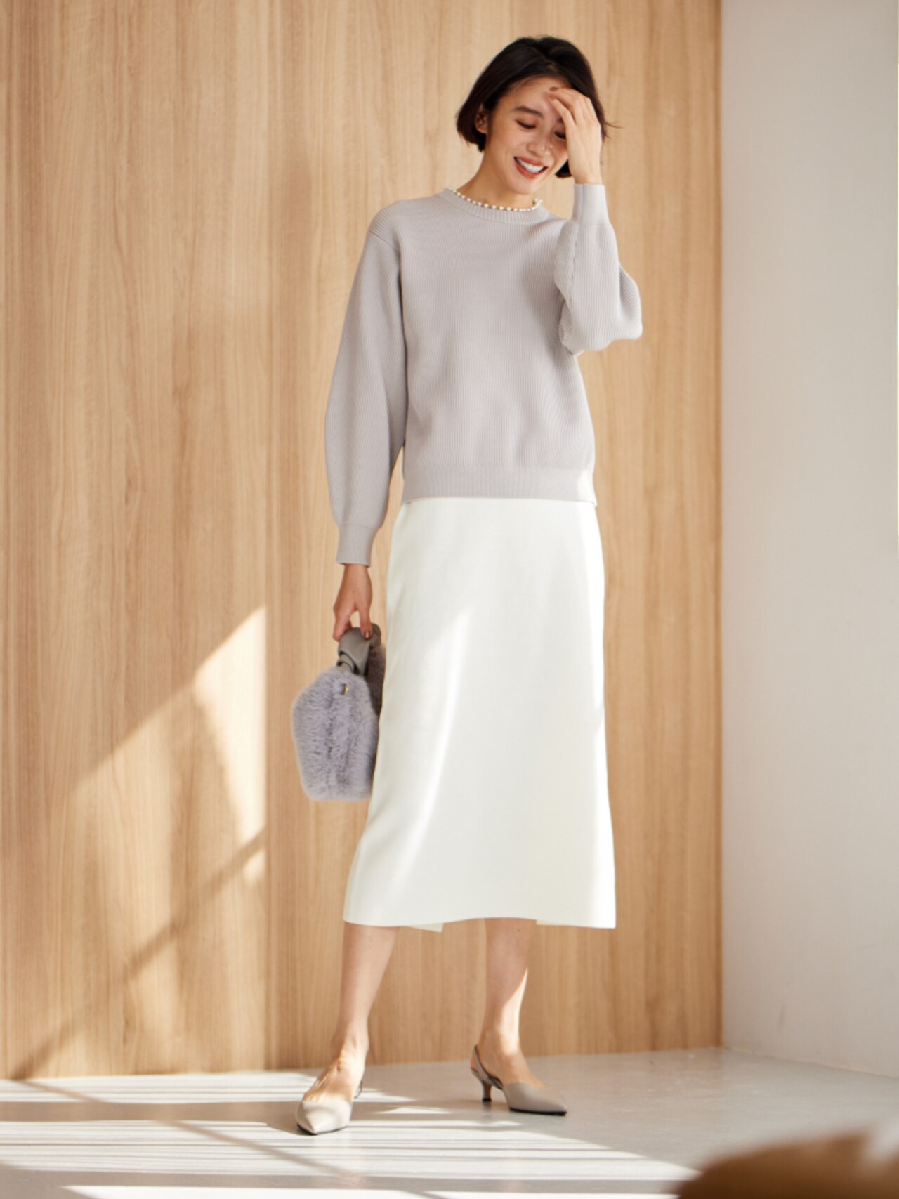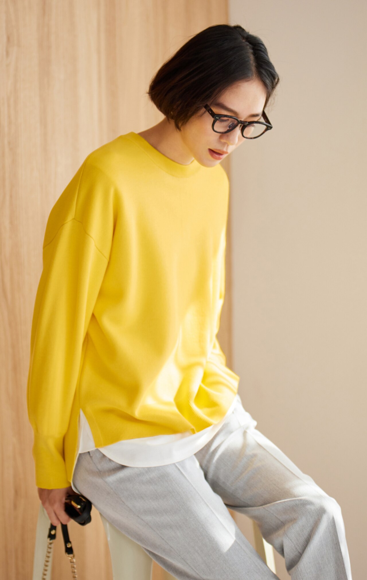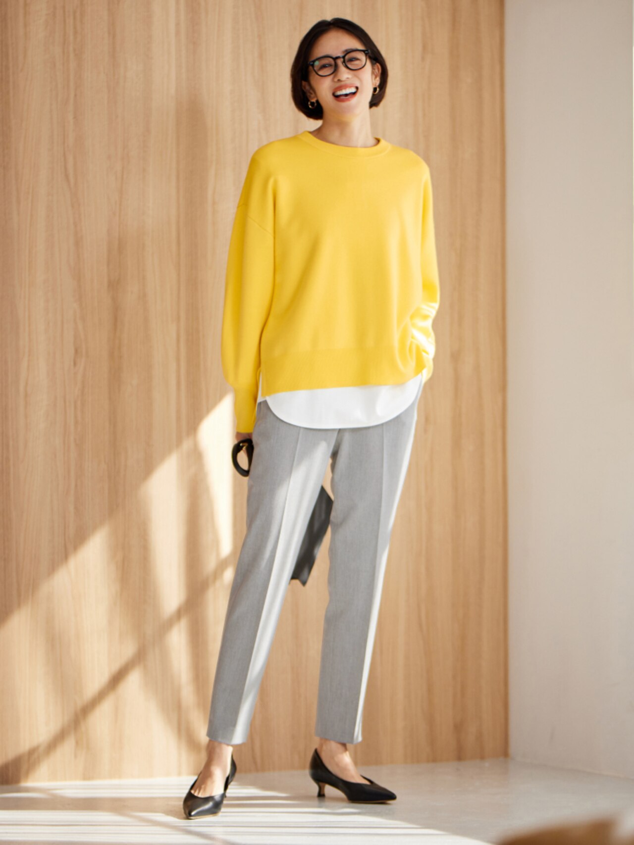 ニットの色選びでなりたい自分へ、WEB&一部店舗限定の10色のカラーニットと上品に着映えるコーデをご紹介します。