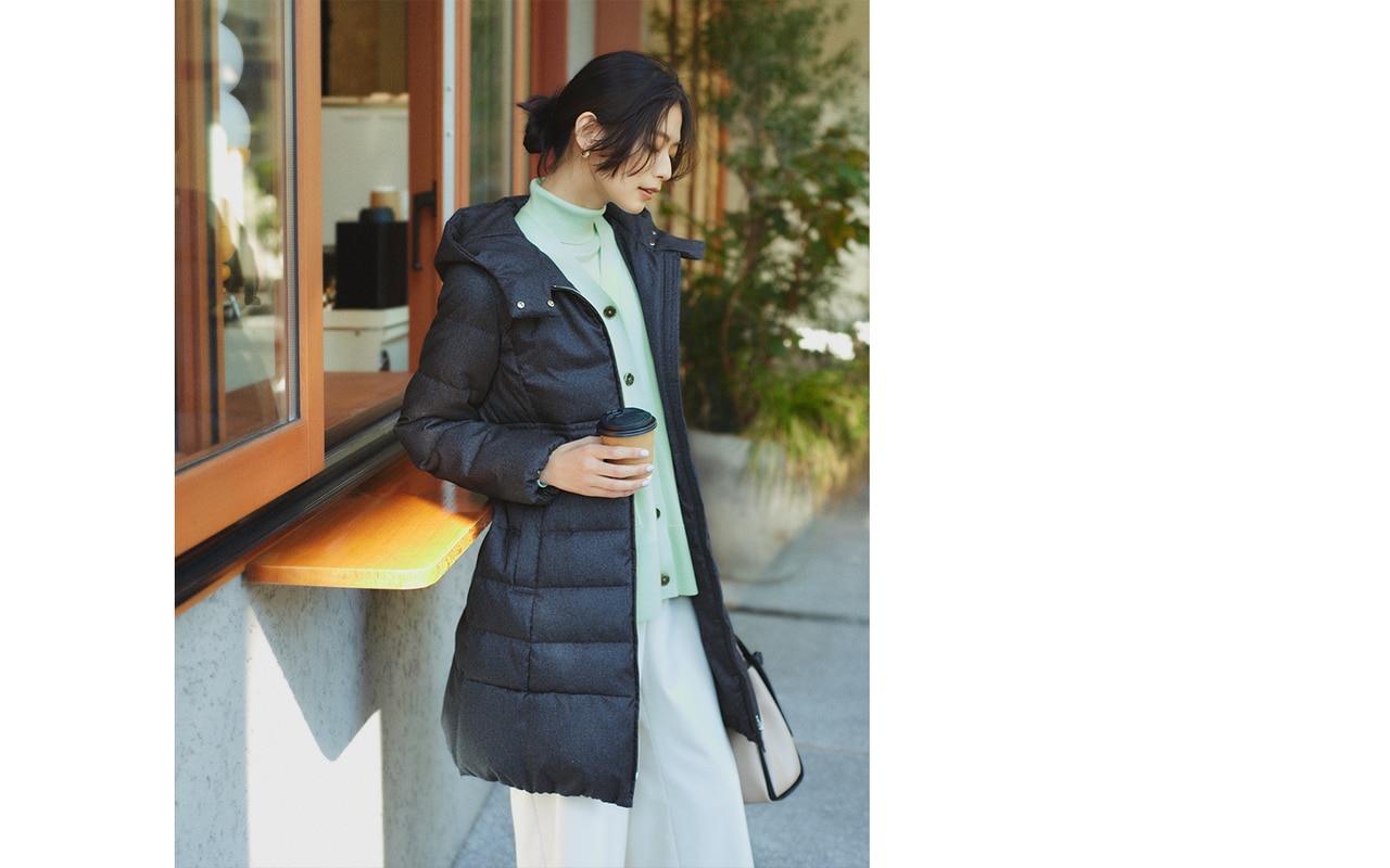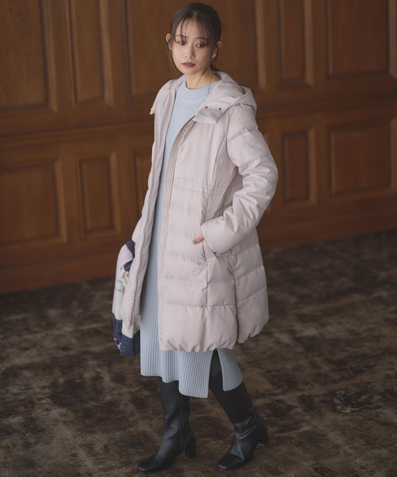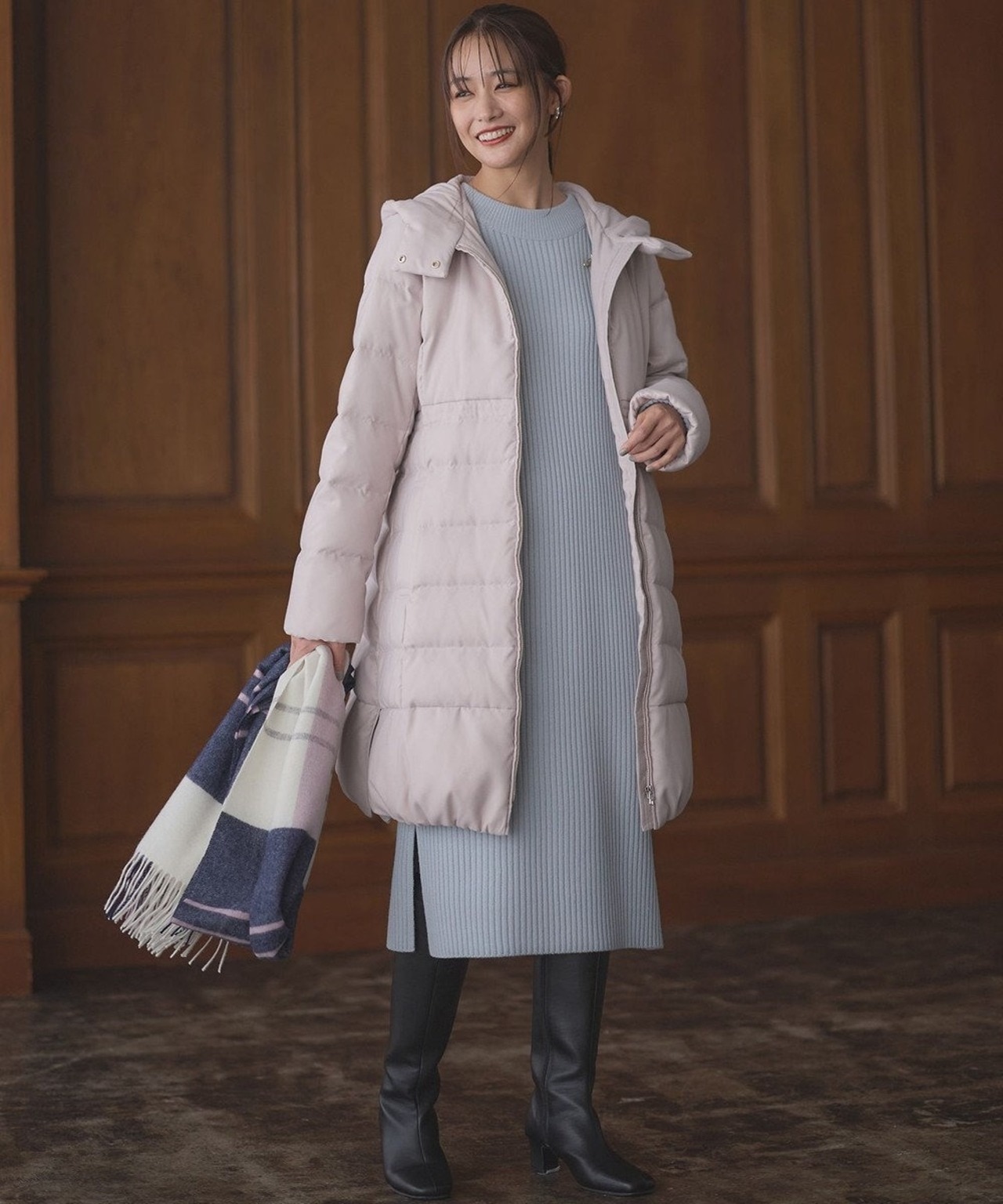 ウエストがシェイプされたデザインのロングダウンは着ぶくれせずすっきりとした印象に。裾はファスナーでシルエットを変えることができるので、どんなボトムとも相性抜群です!