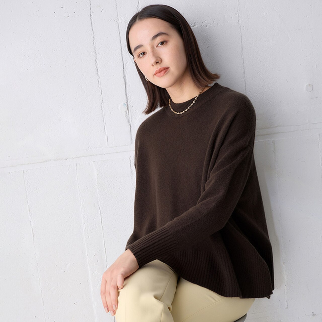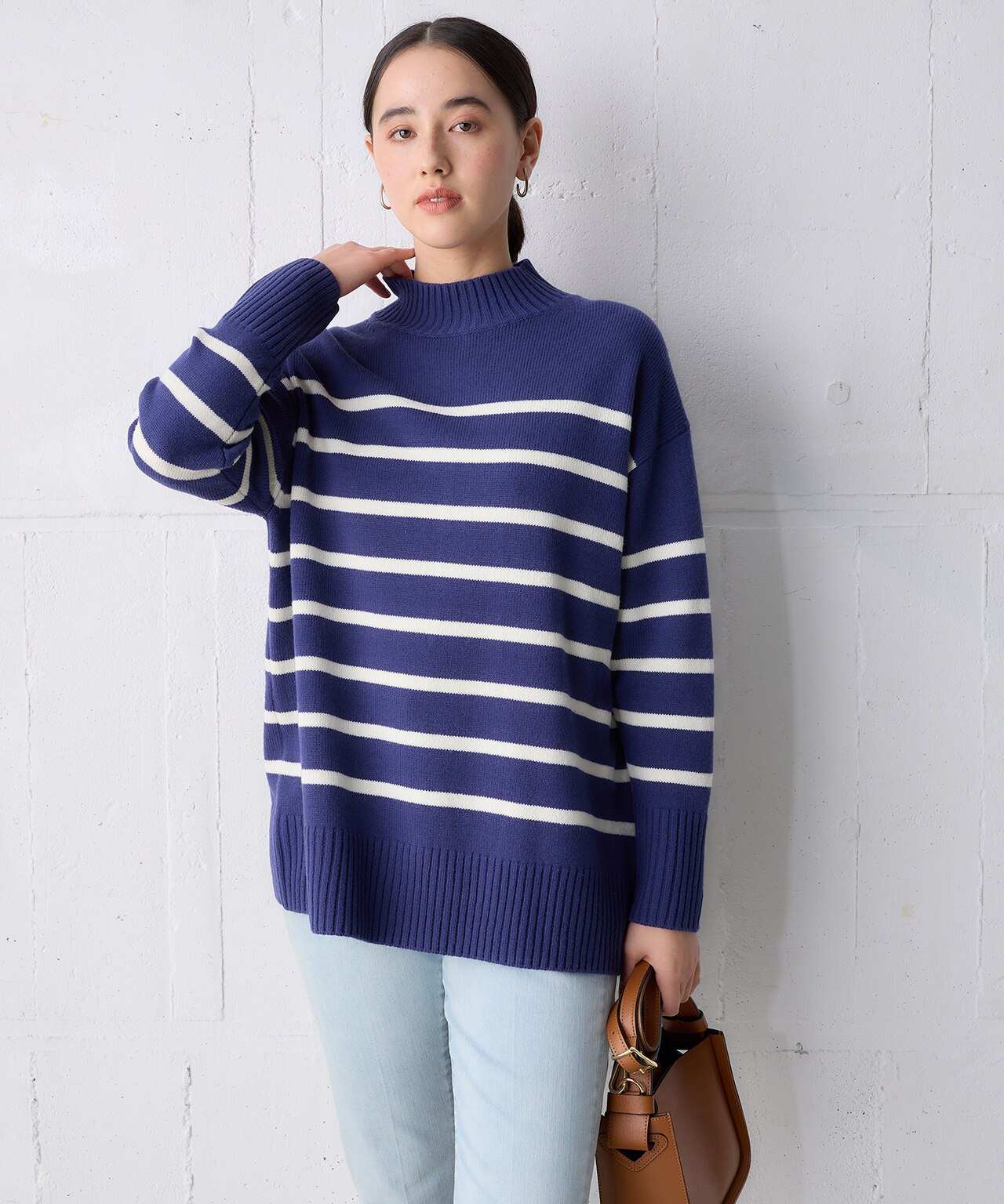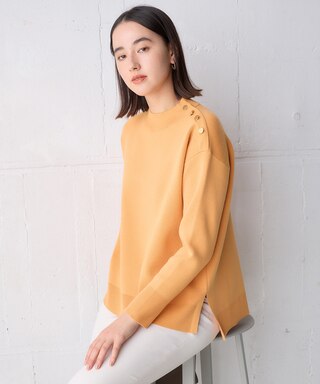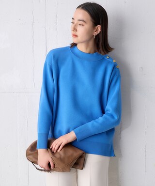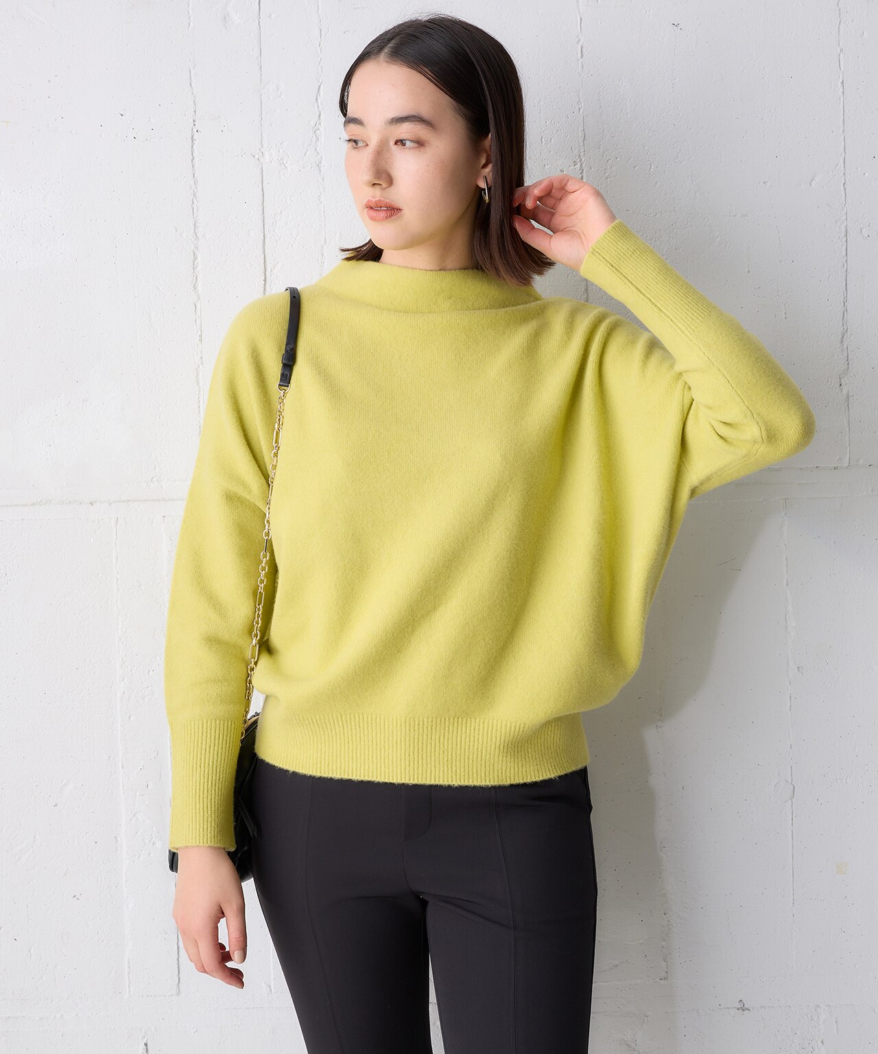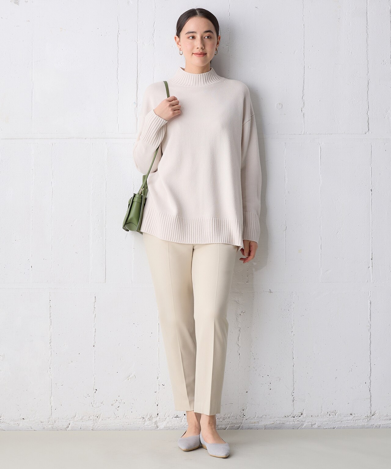 ミドルゲージでボリュームが出過ぎない、程よいワイドシルエットのモックネックのプルオーバー。
