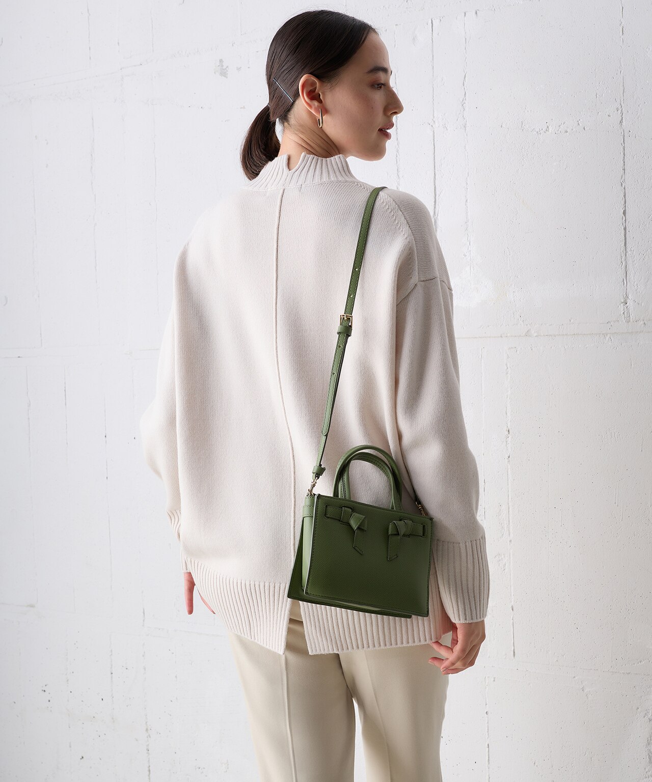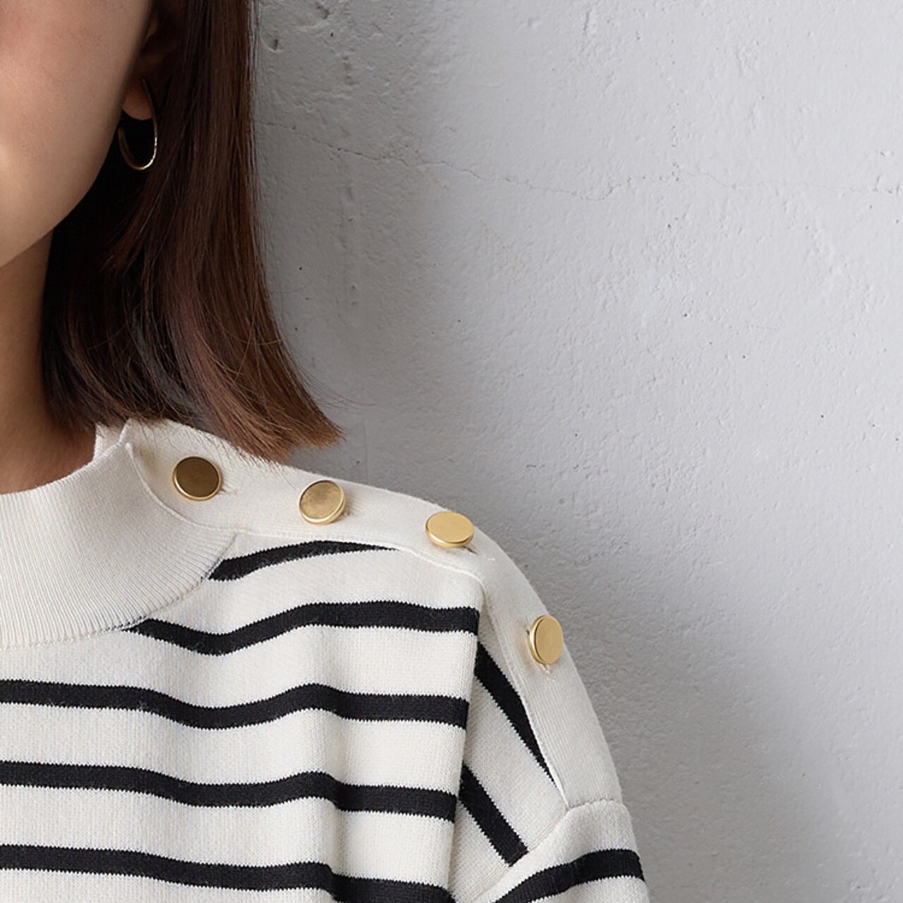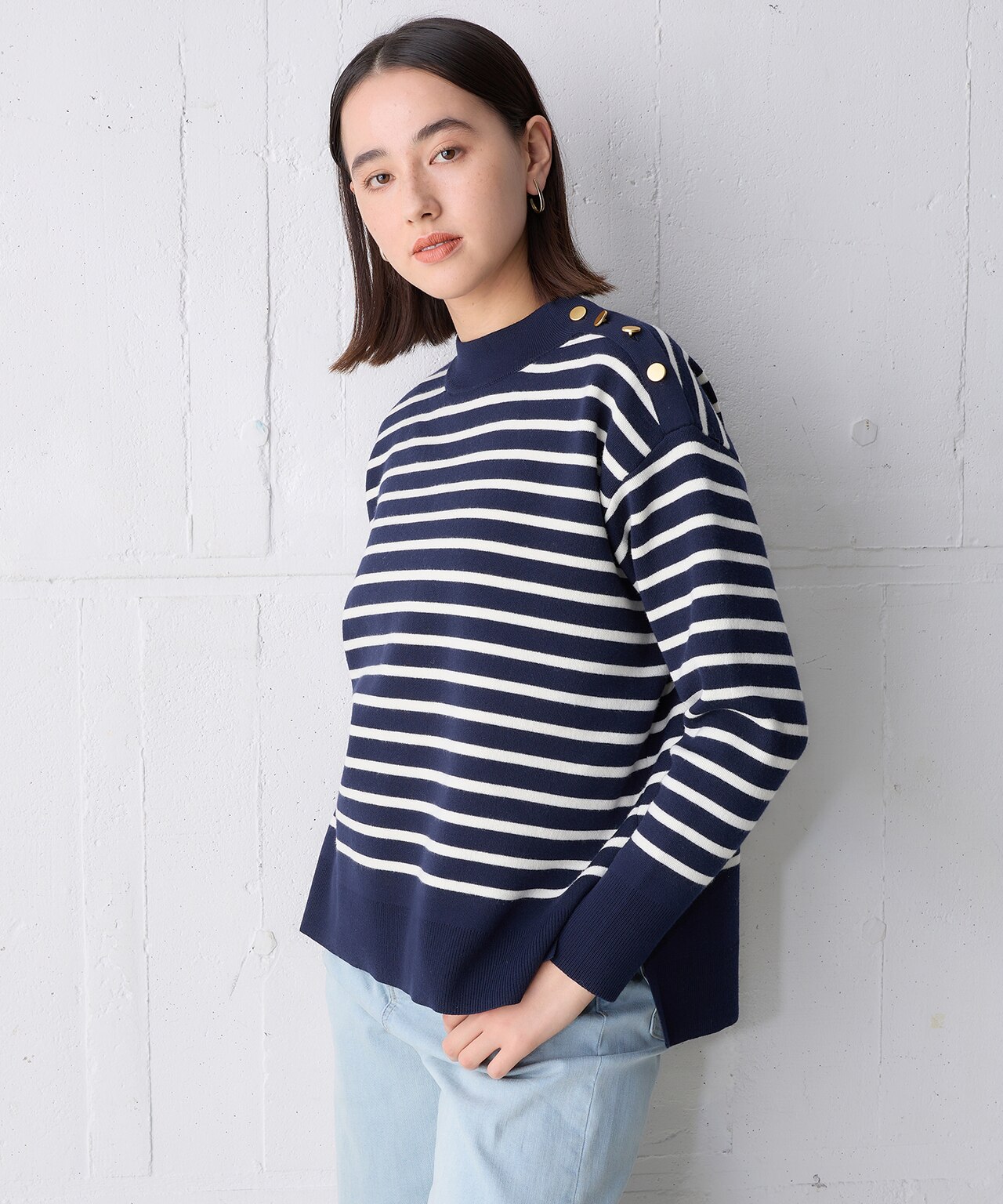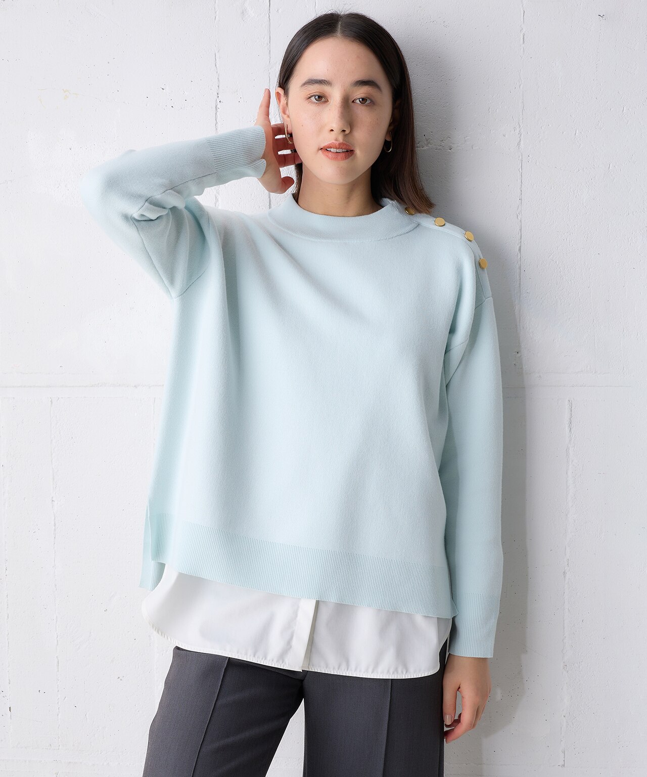 ミドルゲージでボリュームが出過ぎない、程よいワイドシルエットのモックネックのプルオーバー。
