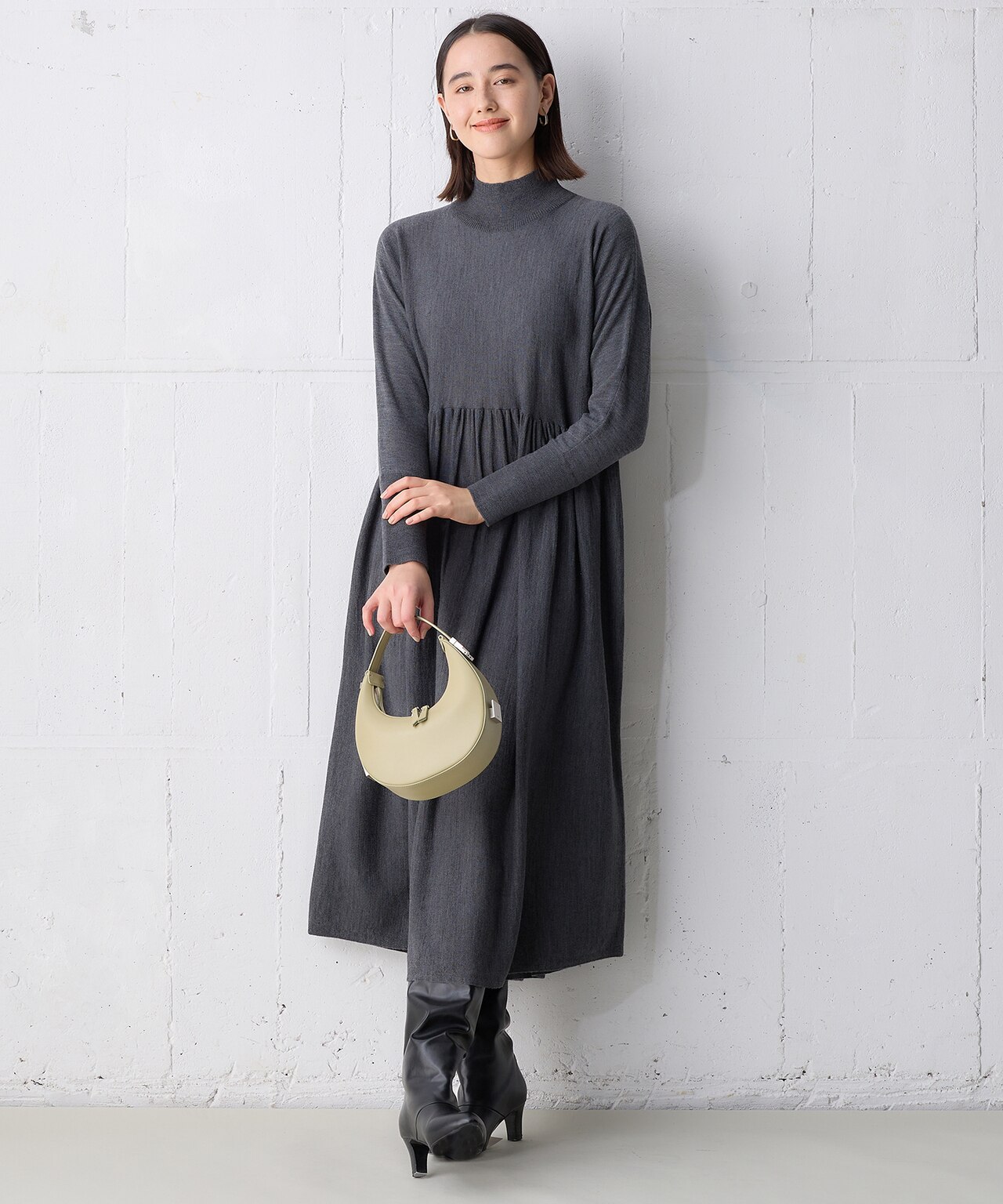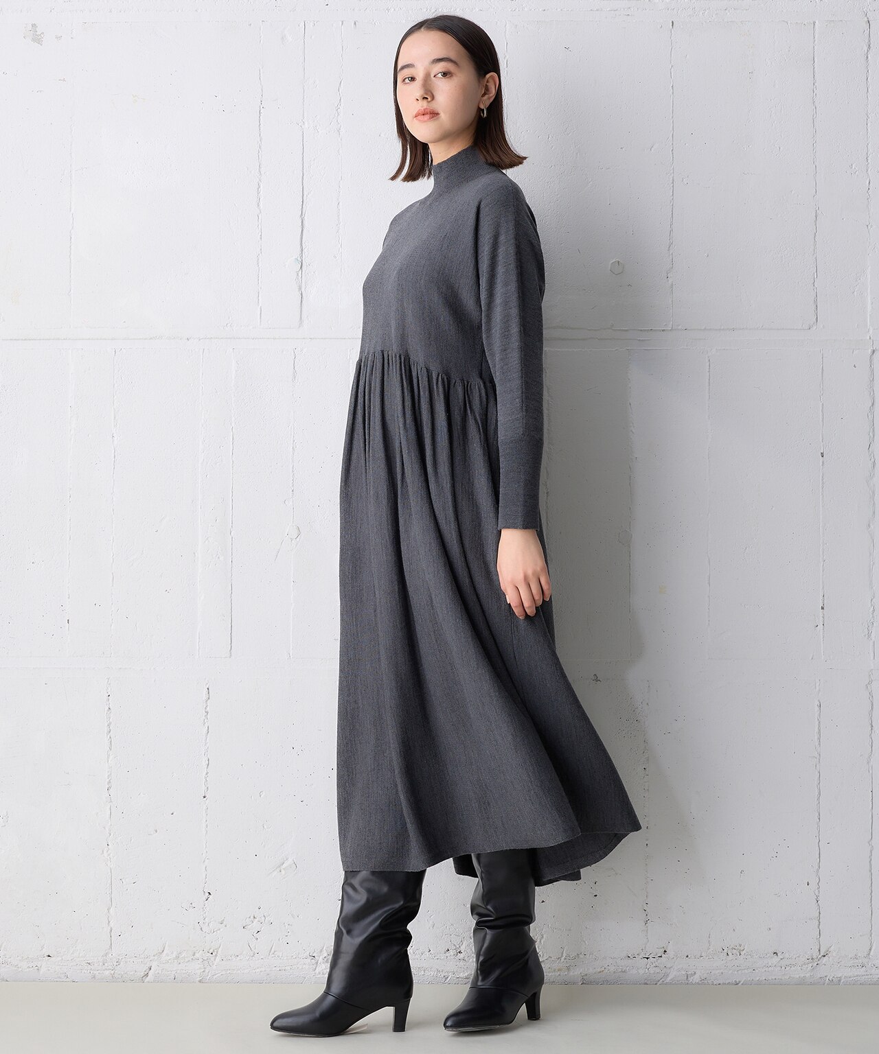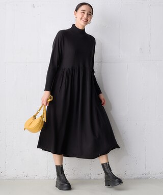 たっぷりのギャザーが華やかに映えるニットワンピース
