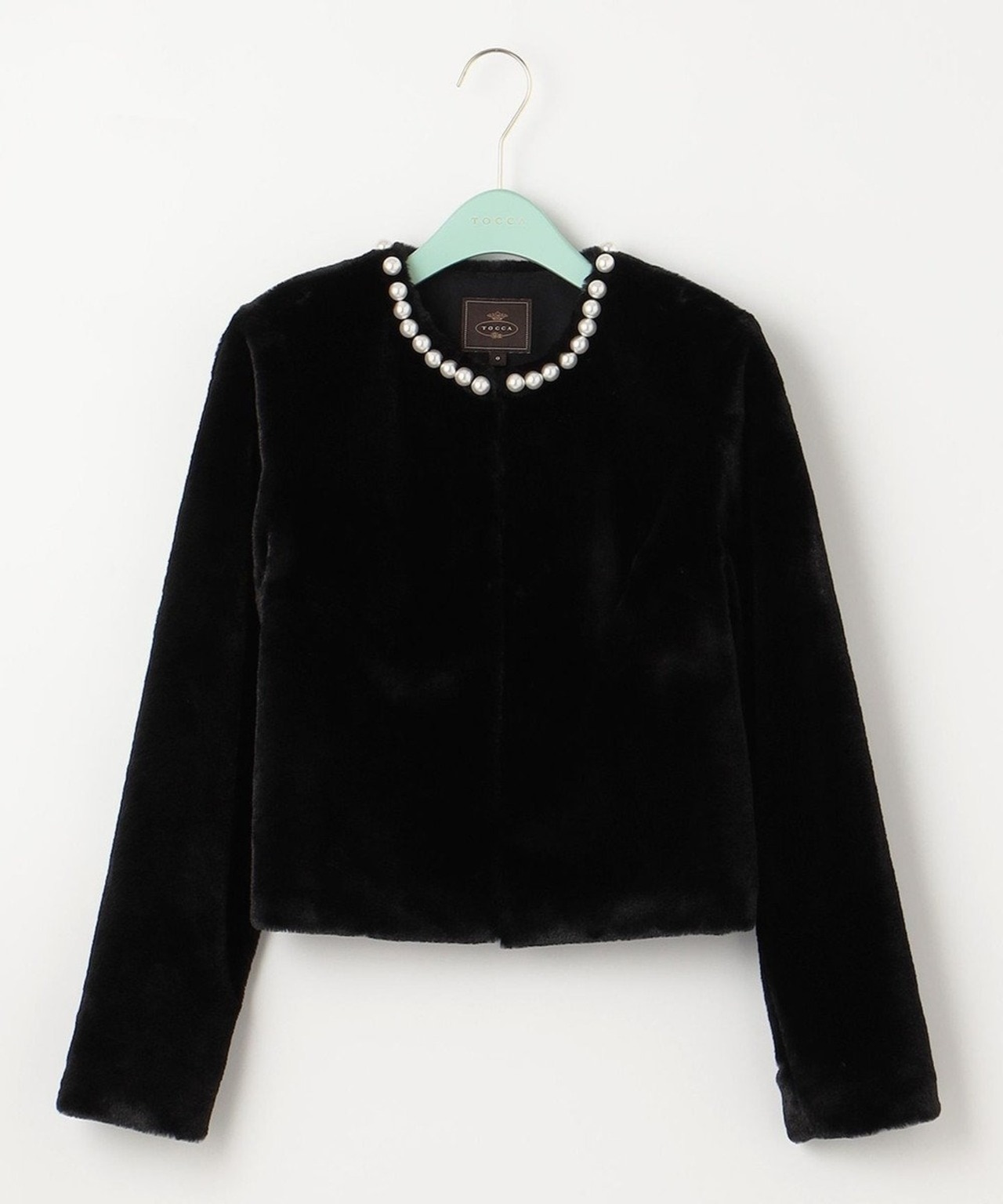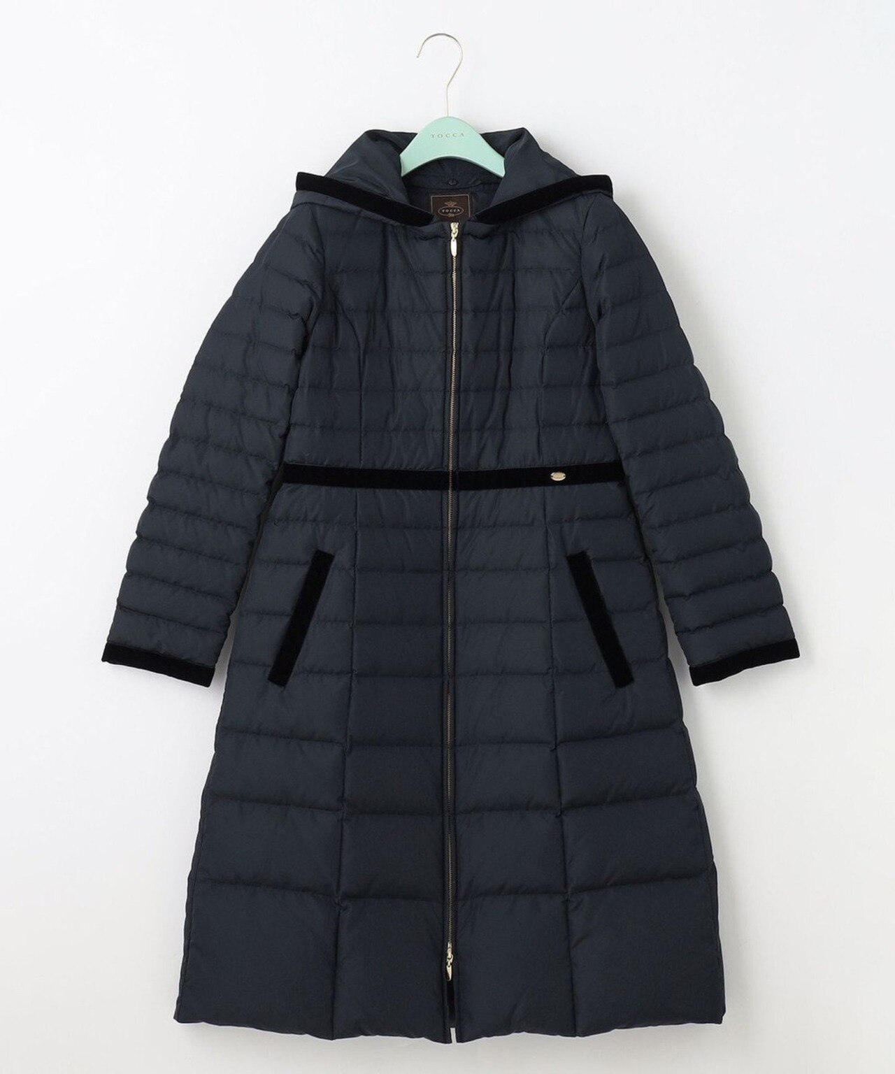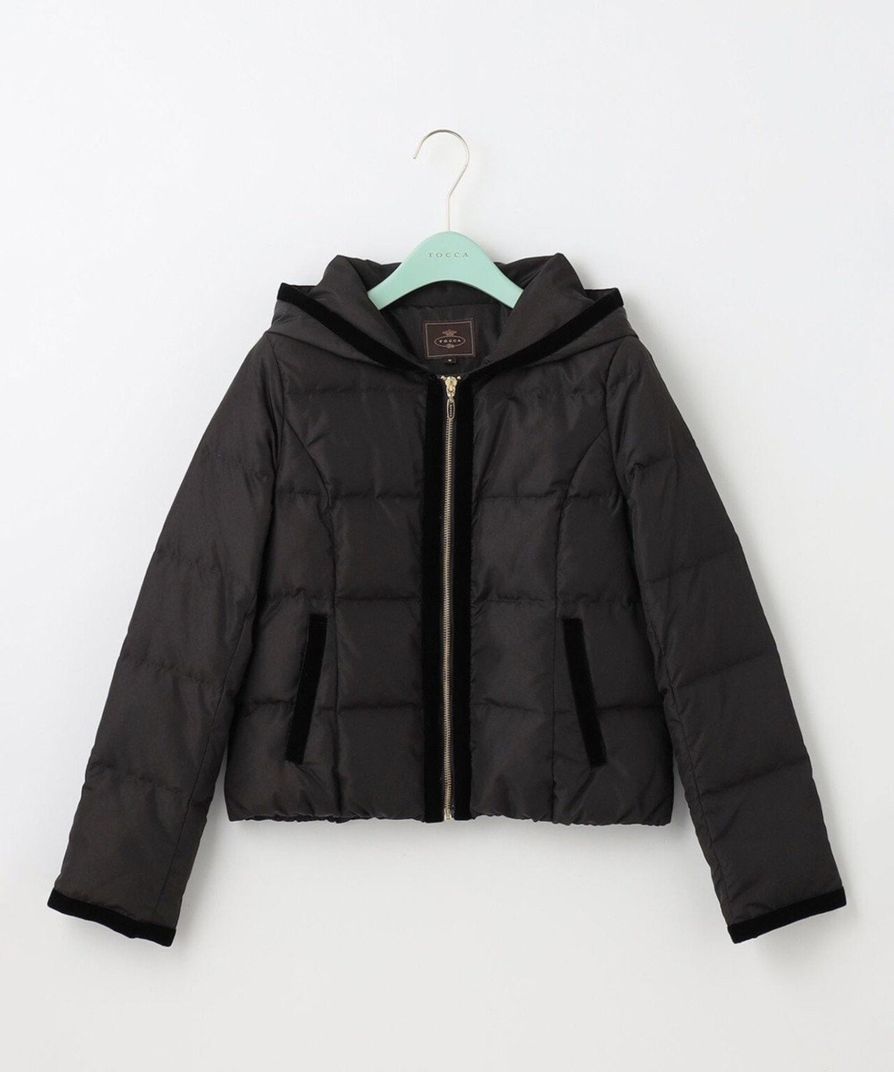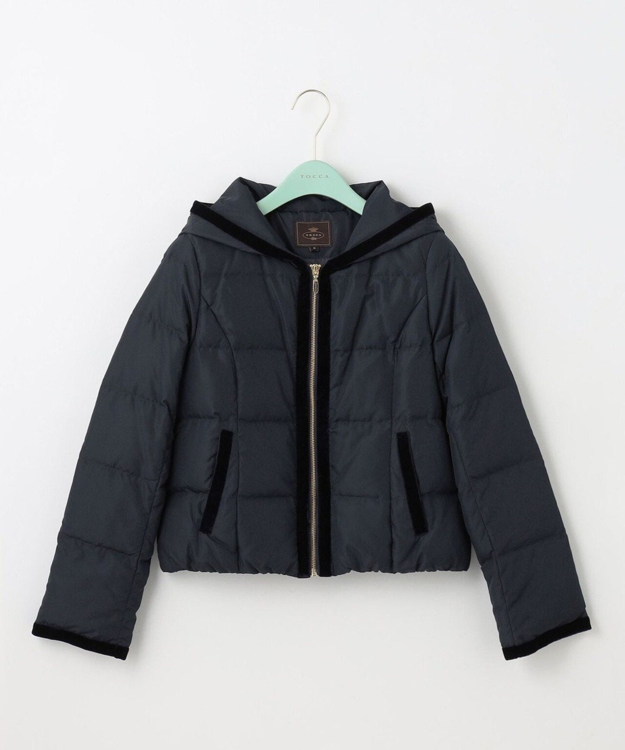 寒がりな方におすすめしたいのは、ショート丈のダウンコート。TOCCAらしいベルベット使いでカジュアルになりすぎない。