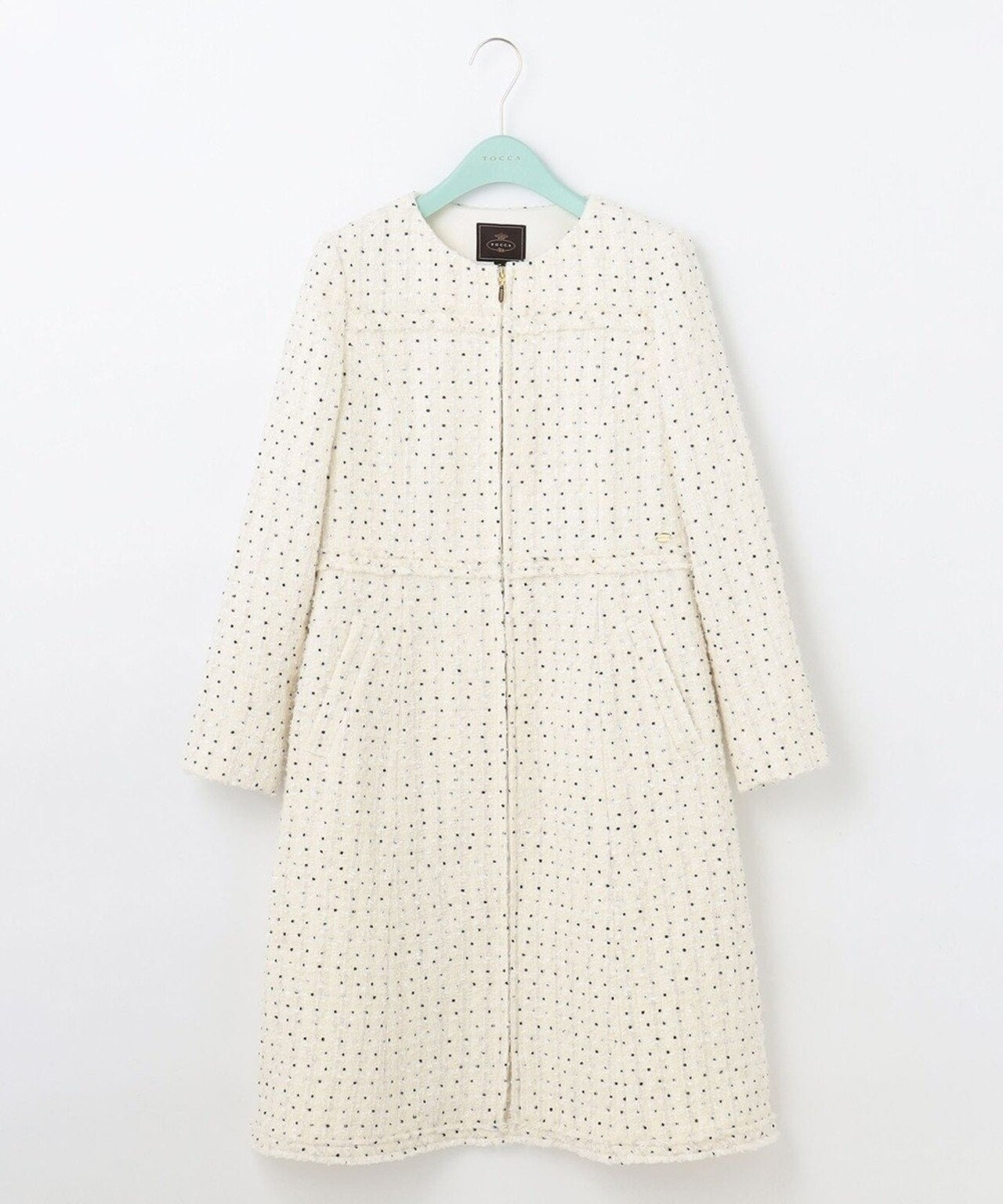 ふわふわとしたようなツイードが可愛いコート。すっきりとしたAラインにゴールドのジップが洗練された印象に。 -