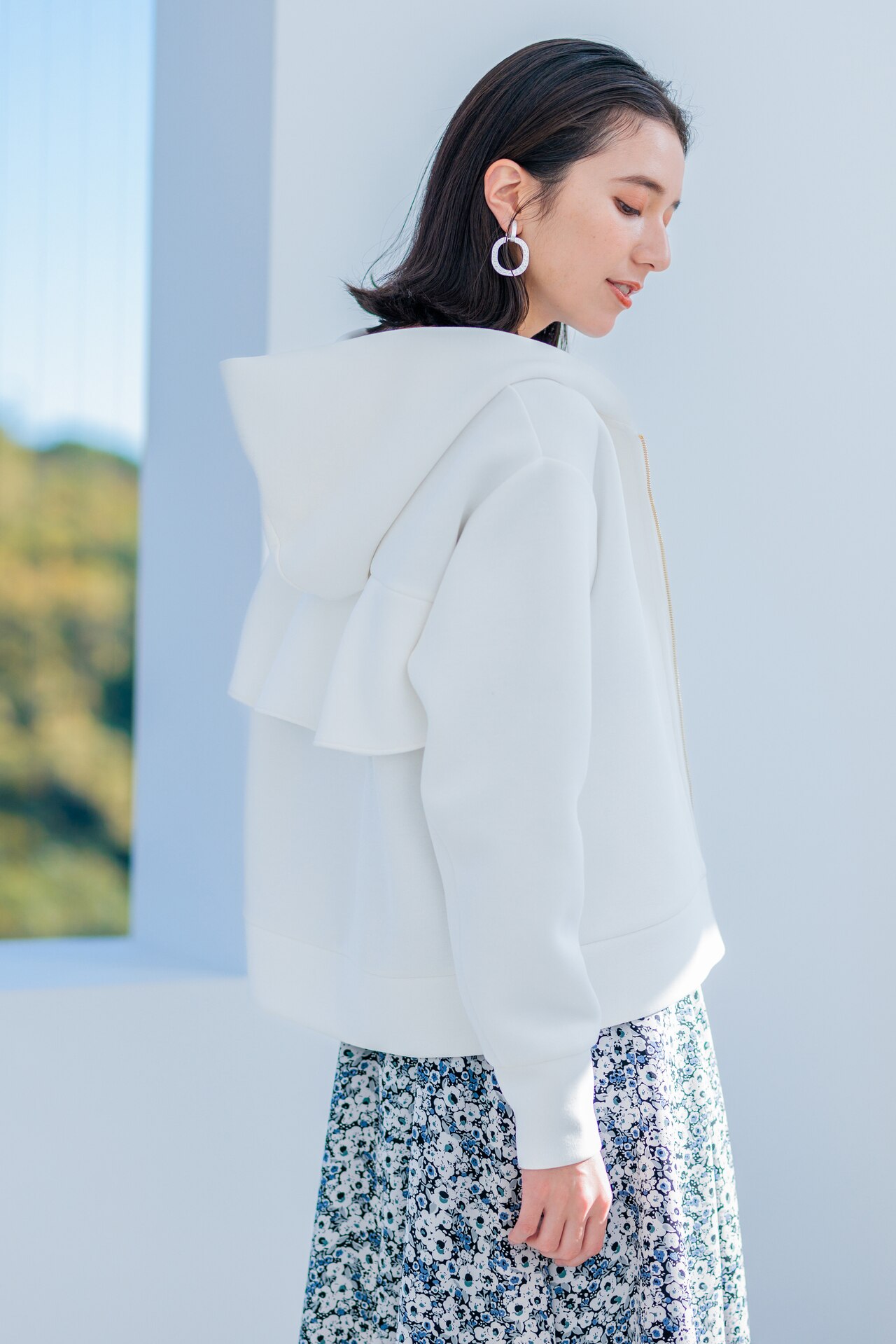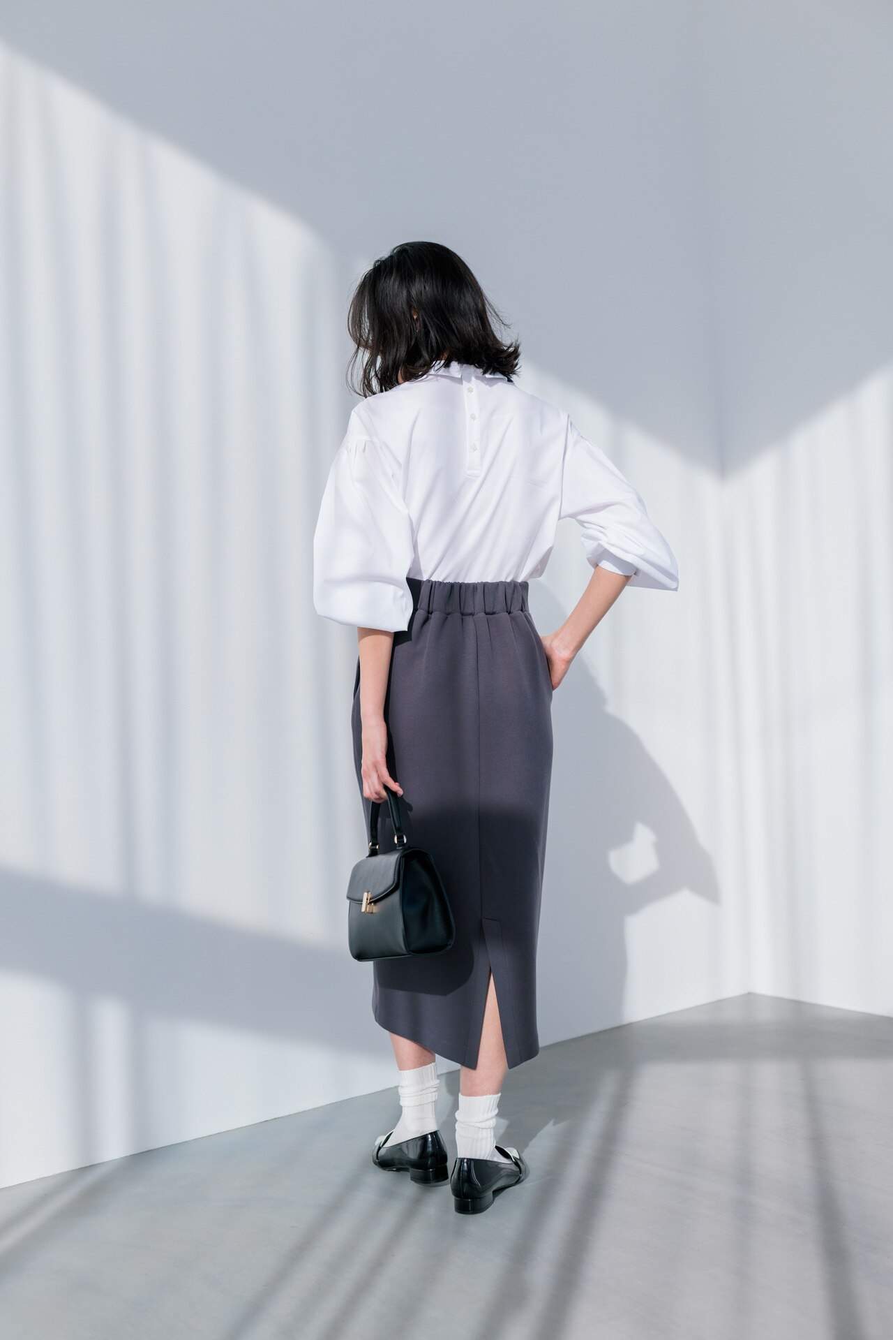 スフレのようなやさしいもちふわ着心地のダンボール生地。程よいボリュームがありとても軽い素材です。程よい生地の肉感が体のラインを拾わず、リラックスして着ていただけます!同素材アイテムと合わせたセットアップ着用がおすすめです。