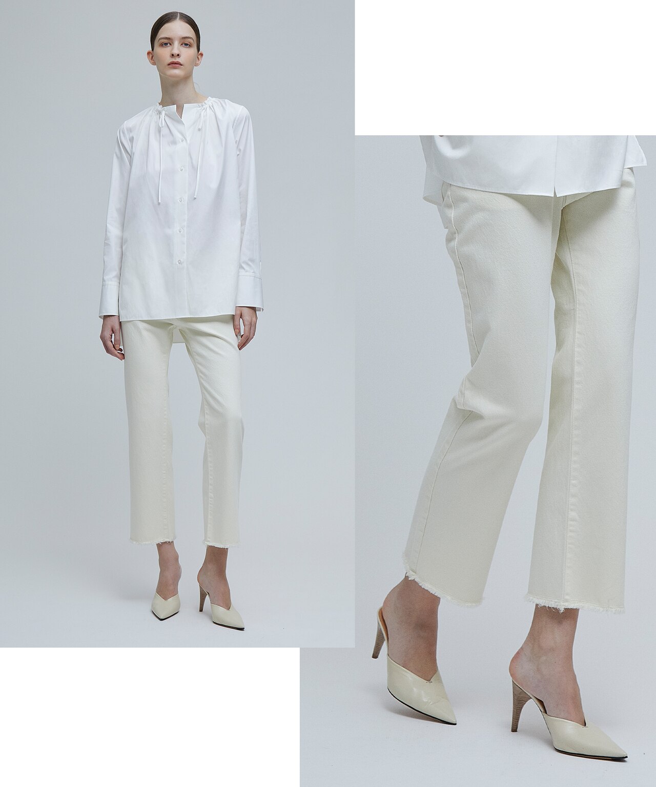BEIGE,らしいシャープなデザインのスカートとカットオフとワイドパンツの3種類をご用意しました。