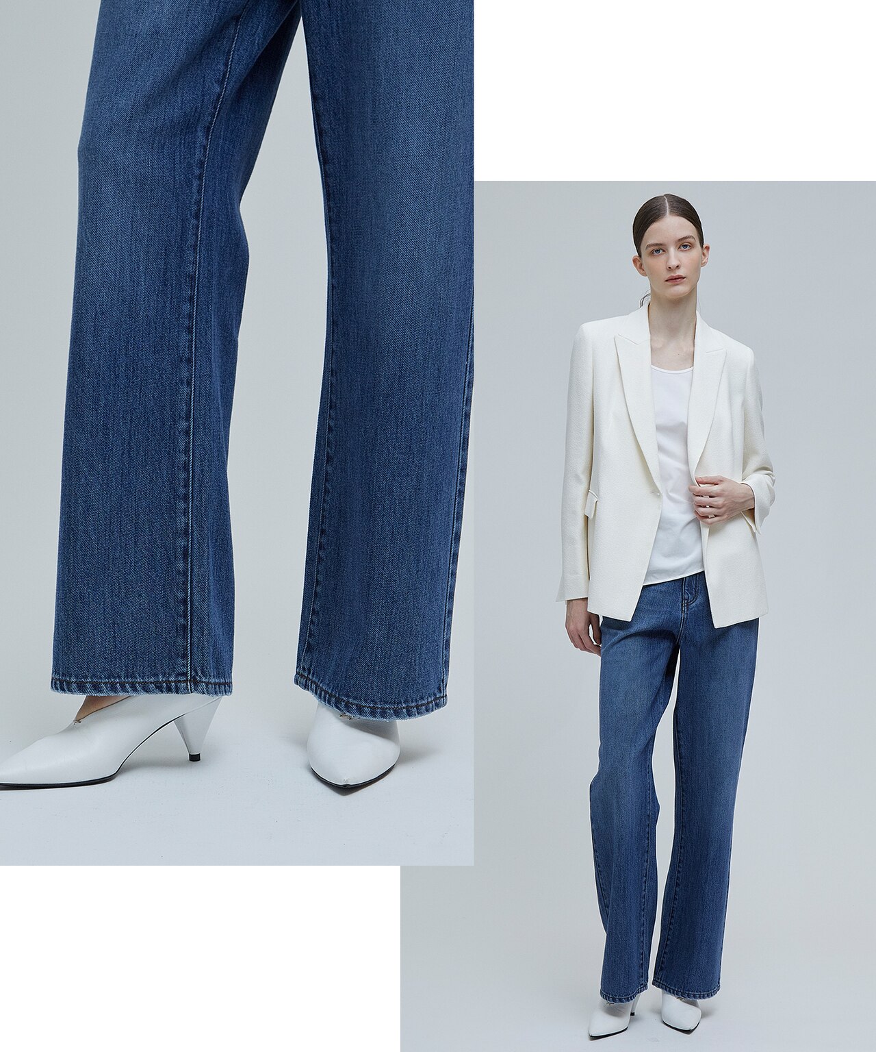 裾に向かって少し広がるクロップド丈デニム。ボリュームのあるトップスやコンパクトなトップスなど様々なスタイリングに着回しでき、Tシャツなどと合わせたカジュアルスタイルも、クロップド丈のデニムなら気負わずにシャープな雰囲気で着こなせます。