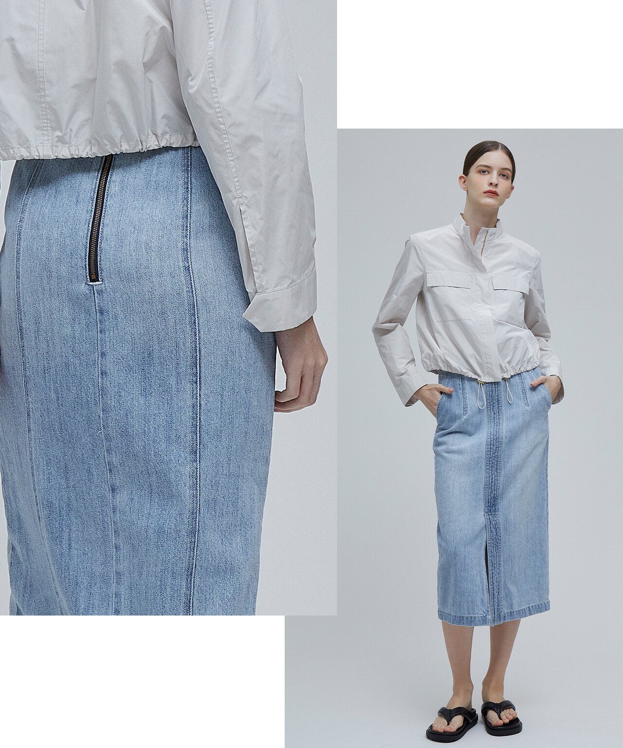 スタイリッシュな雰囲気纏うデニムスカート。Iラインシルエットが履くだけで女性らしさをプラスし、合わせるアイテム次第で、カジュアルからキレイ目まで幅広くアレンジできるデザインです。