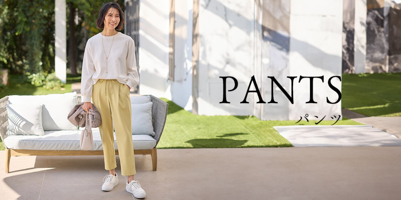 ・ウエストの後ろがゴム仕様なので、楽な履き心地ながらきちんと見えする