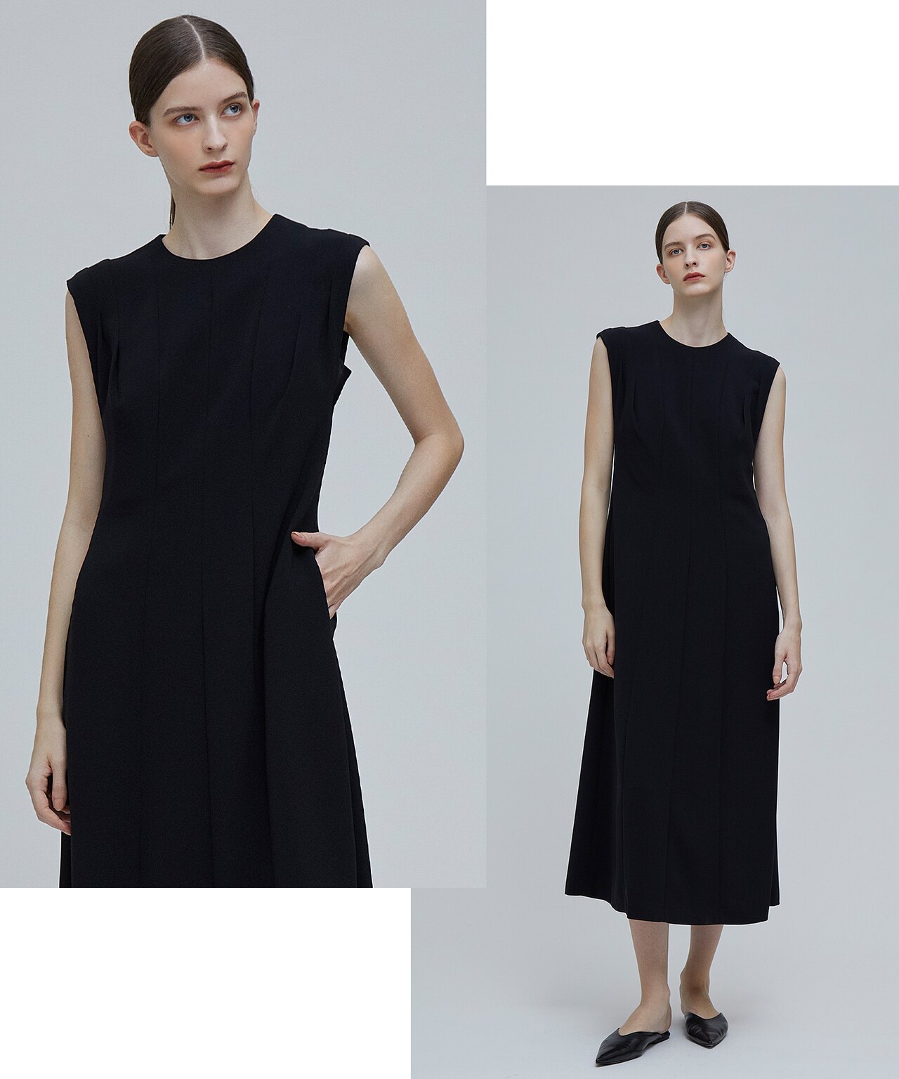 計算されたタックやウエスト高めの切り替えしがスタイルアップの効果あり、ミディ丈もシーンを選ばず着まわせるシルエット。合わせるアクセサリーやシューズなど、小物次第で様々な雰囲気のスタイリングが楽しめます。