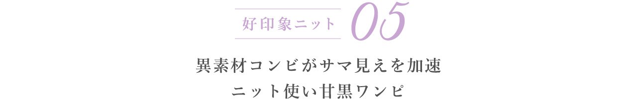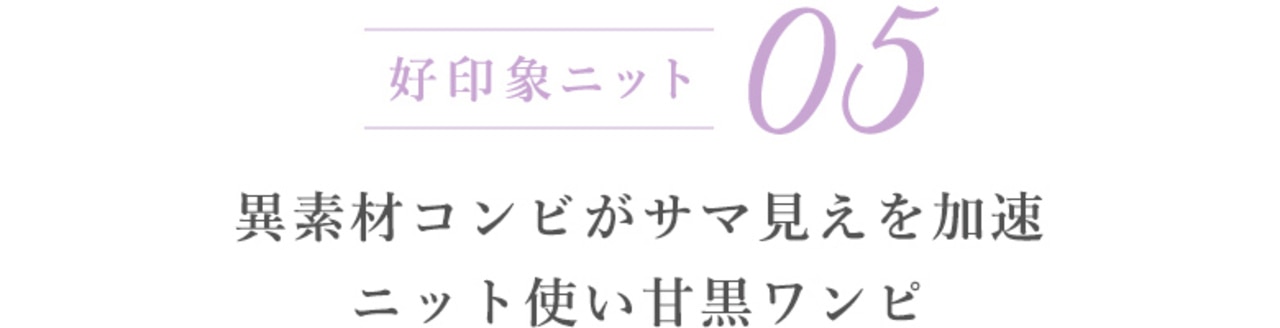 コンパクトな上半身はニット、スカート部分は上品柄のジャカードというコーディネート感とスタイルアップを