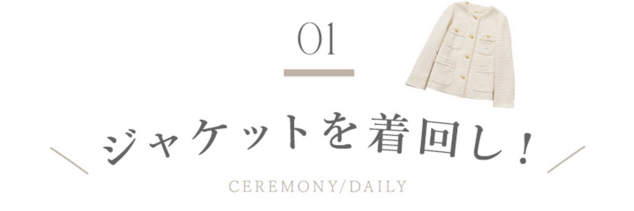 華やかさを感じるハレの日にぴったりな一着です。ヒップにかかるやや長めの着丈とボクシーなシルエットがデイリーにも活用しやすいポイント。