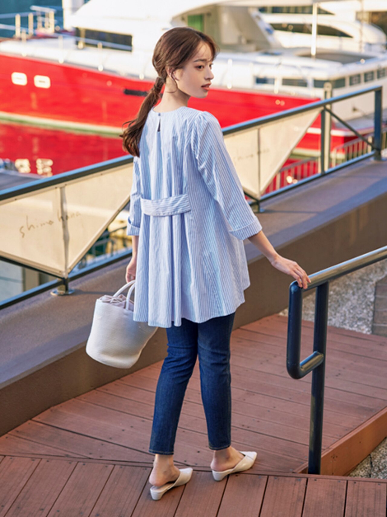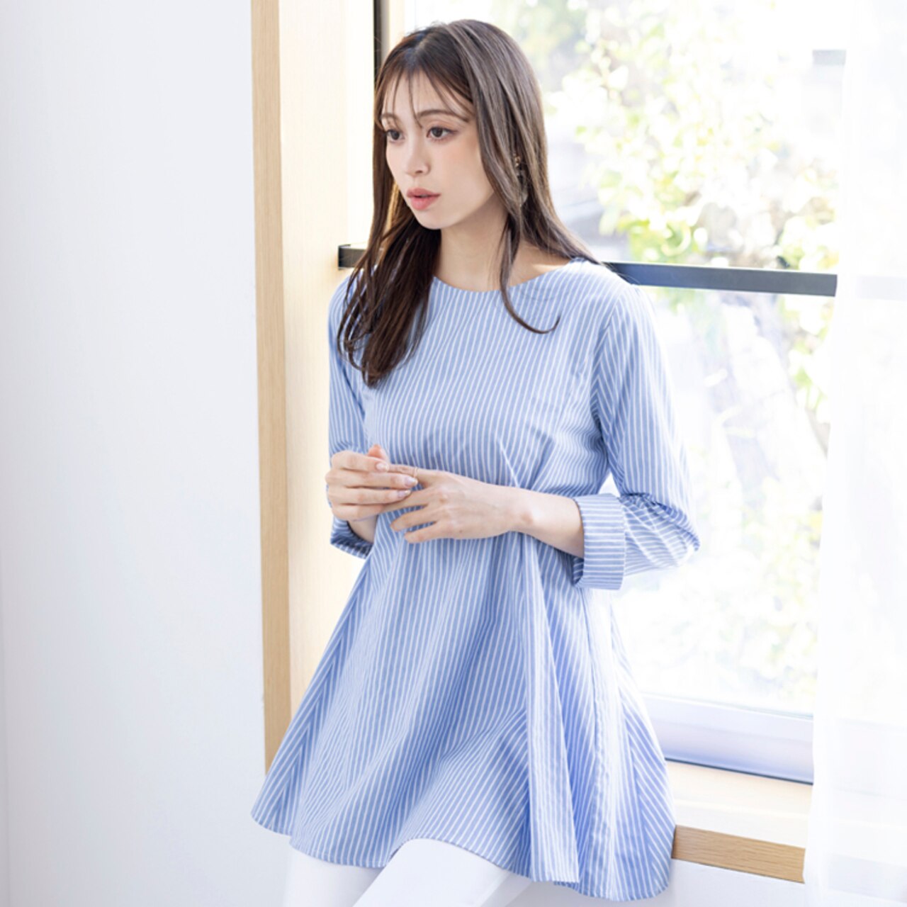 不動の一番人気はサックスストライプ。ストライプ柄でタテのラインを強調しながら、サックスの色で爽やかさを演出。アイテム自体のフェミニンさと華やかさに、柄で春らしさを感じれる要素を加えてくれるのが一番人気の秘訣です。