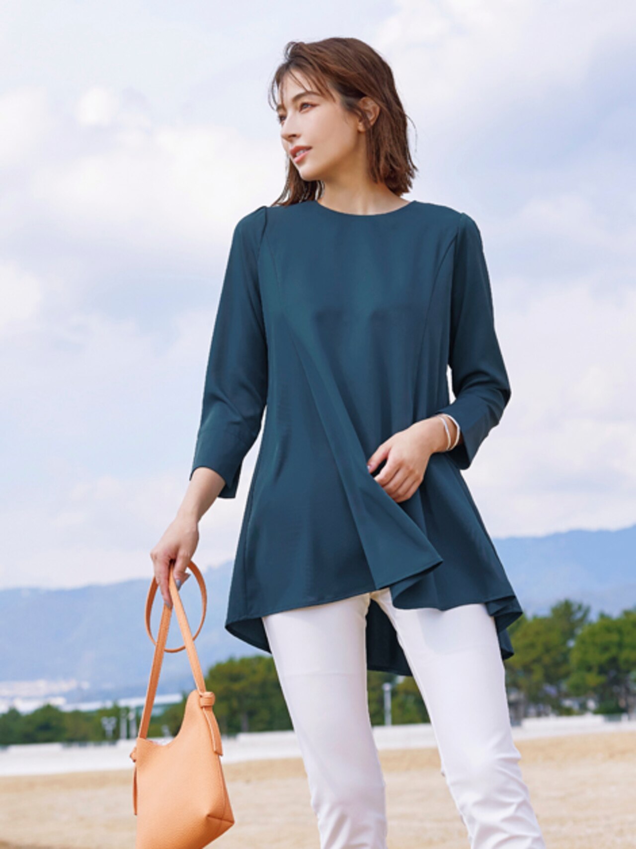 チュニックというカジュアルアイテムながら、ドレープ感のある生地を使うことでフェミニンでキレイ目なデザインに。まさにTiaclasseでしか見つからない無敵のアイテムとなっています。 -