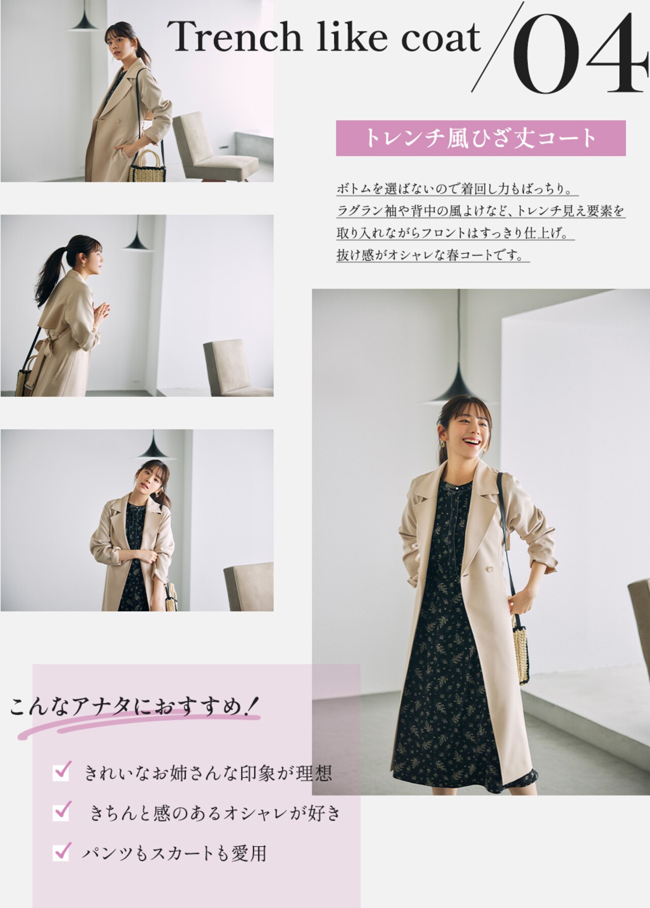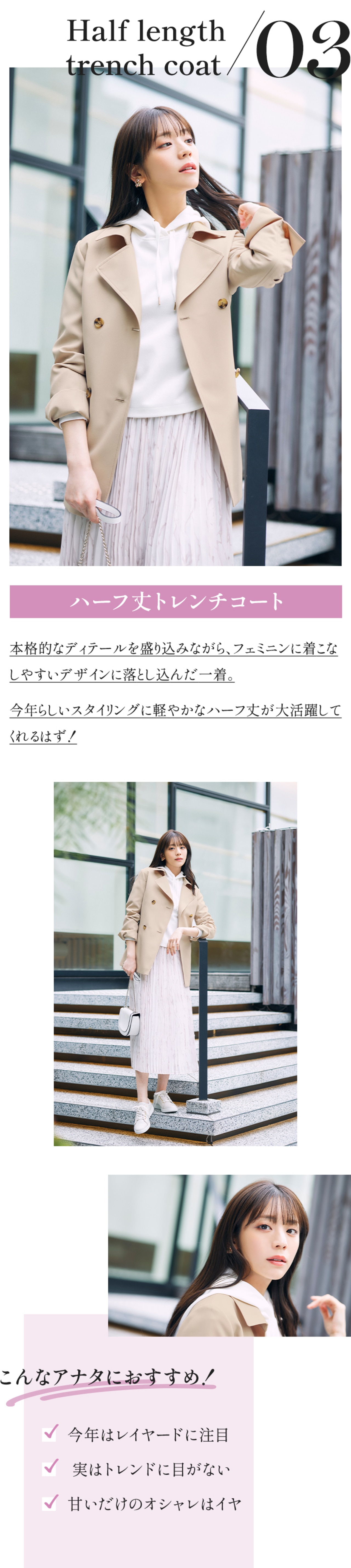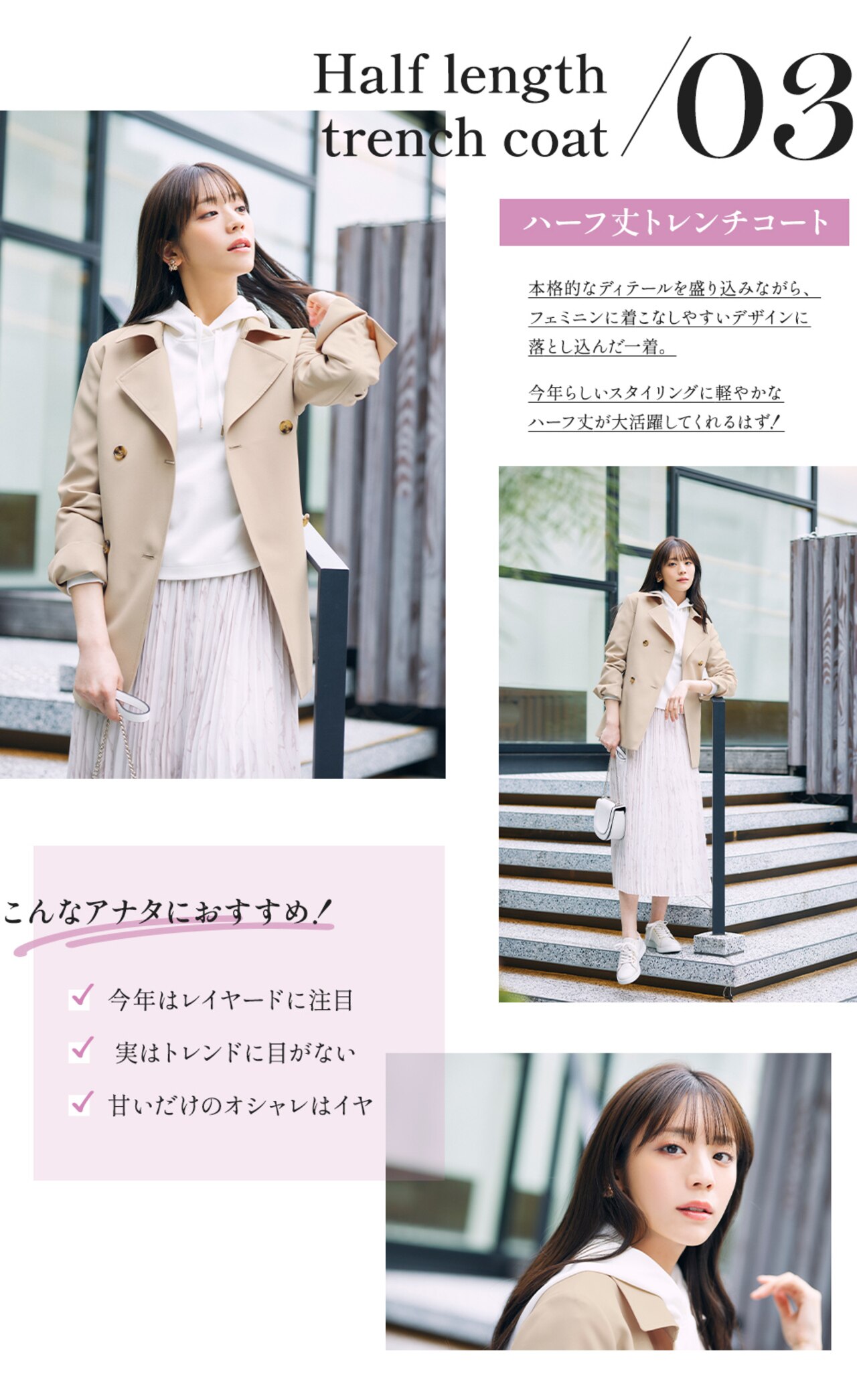 着る服に悩みがちな端境期もお気に入りのアウターがあれば安心だし、スタイリングの完成度もグッと高まります。