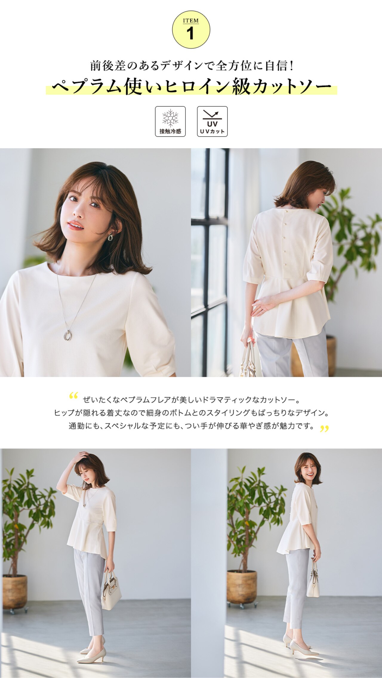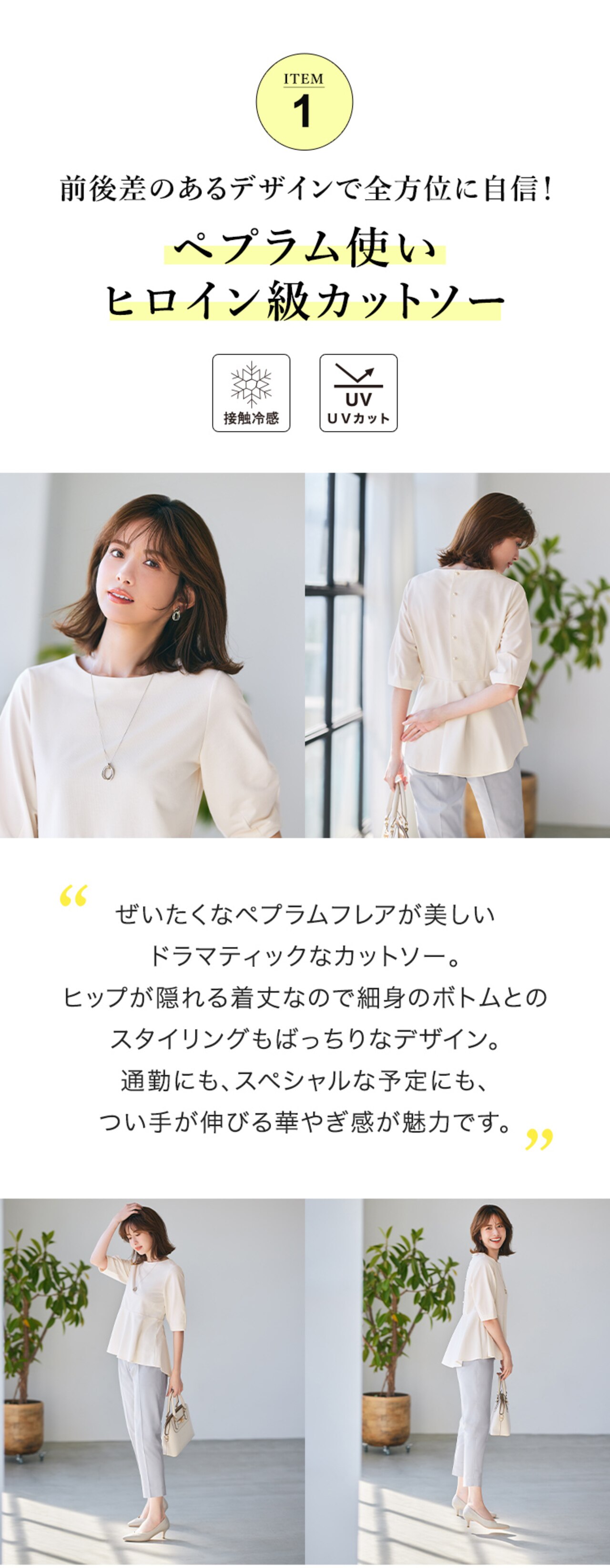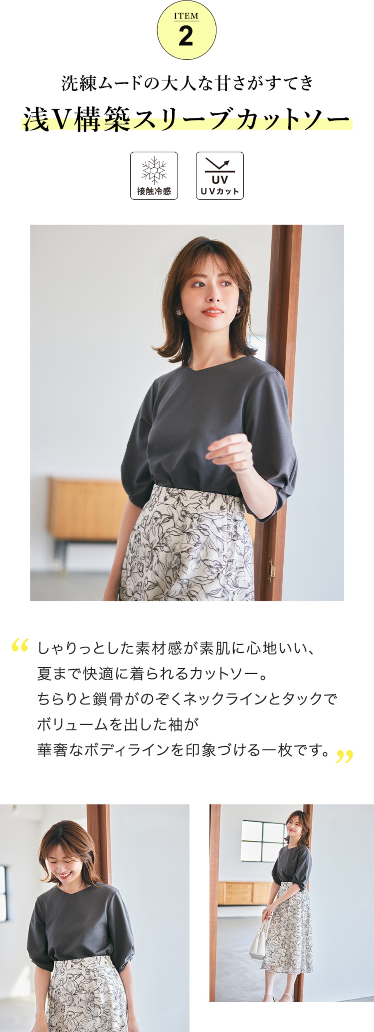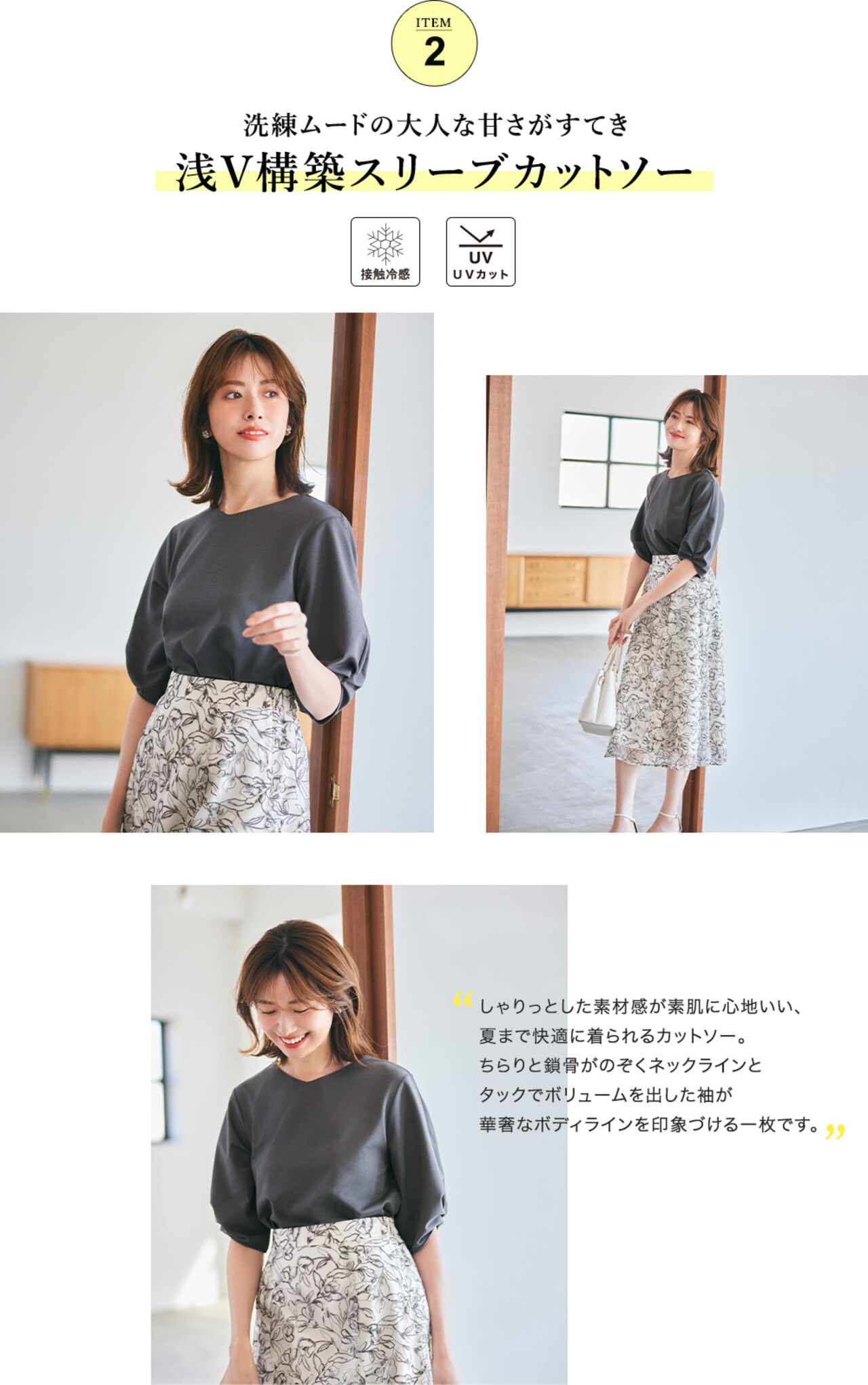 一枚でサマ見えするカットソーで、愛されコーデを実践して