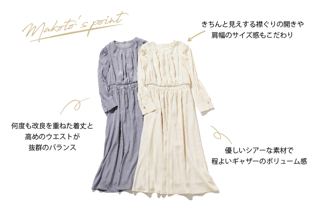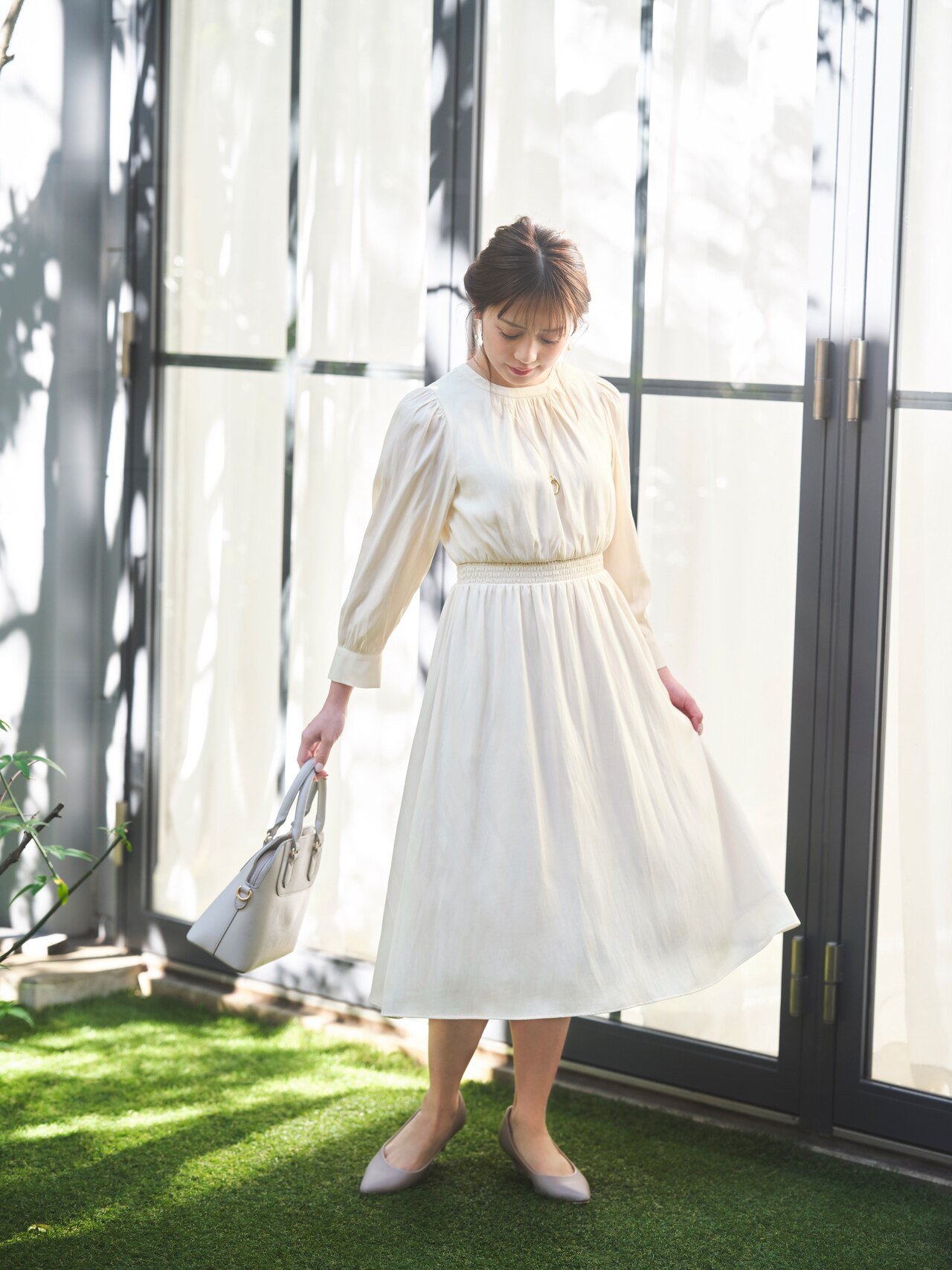 ウエスト位置を高めにすることで、スタイルアップ見えが狙える優秀ワンピ。