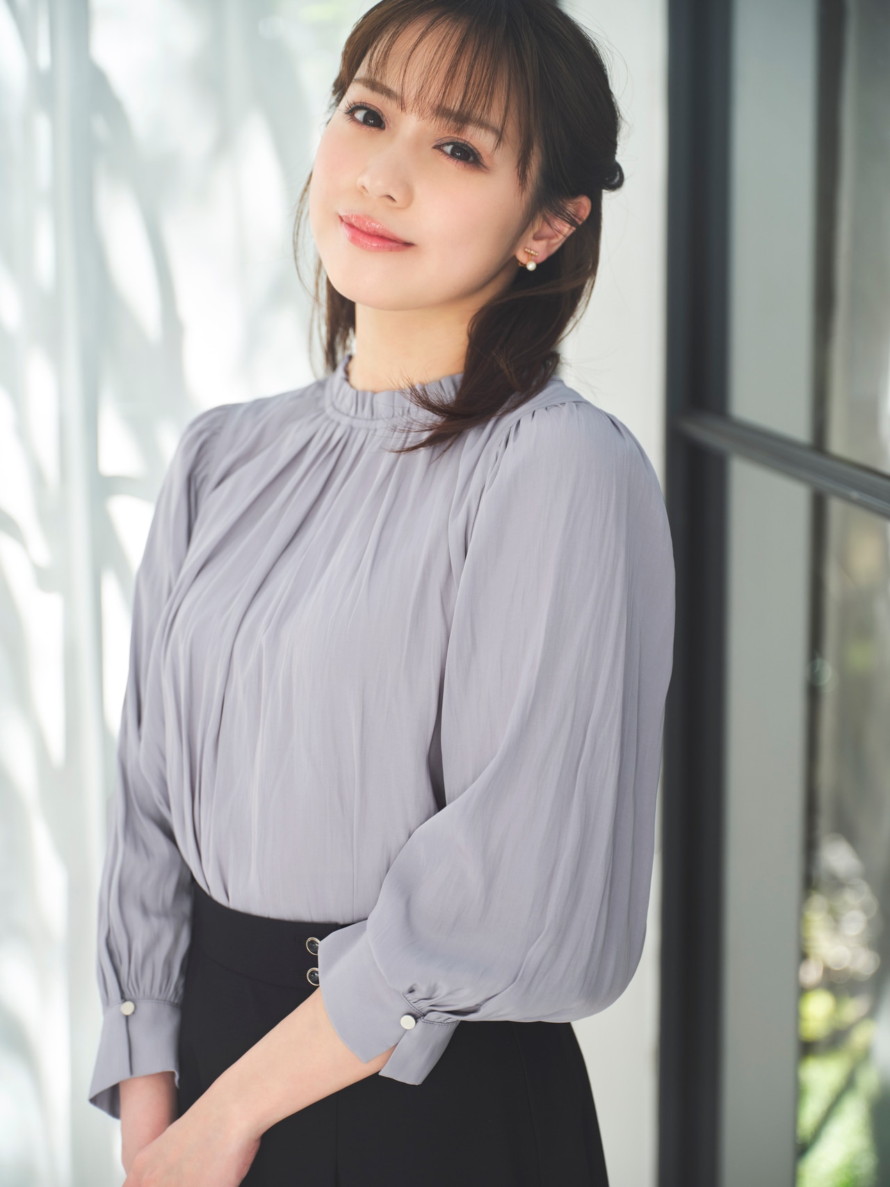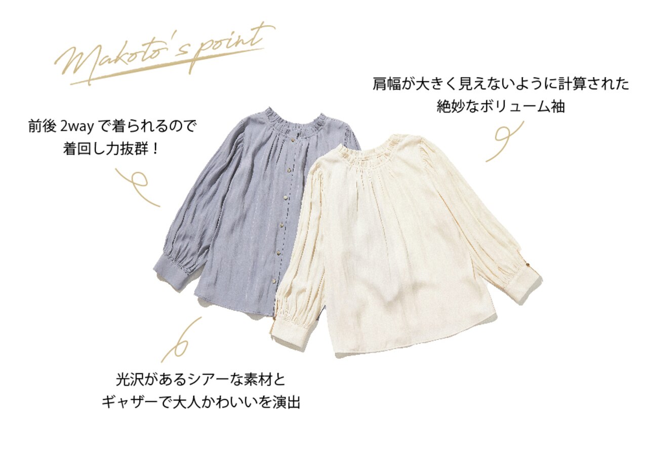 肩幅や袖の量感を調整しさらっと着こなせるボリュームスリーブデザインに。