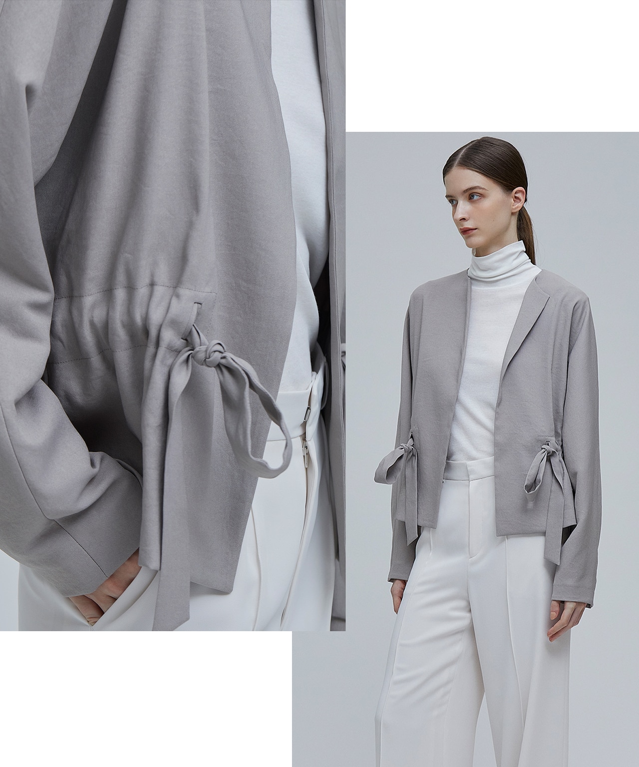 BEIGE,の人気ウォッシャブル素材をアップデートしたショート丈ジャケット。コンパクトな丈感が今年らしいすっきりとしたデザイン。さっと羽織るだけで一気に春気分にシフトしてくれる一枚です。