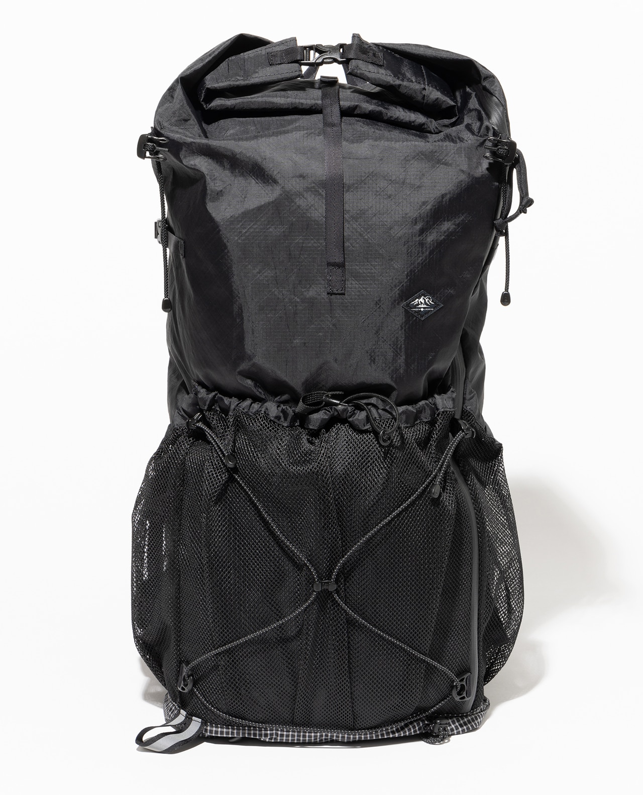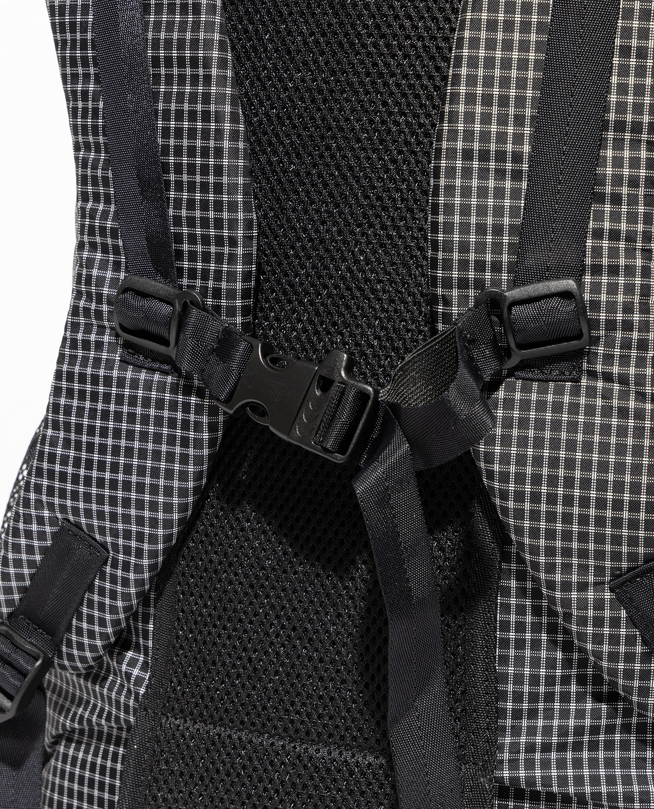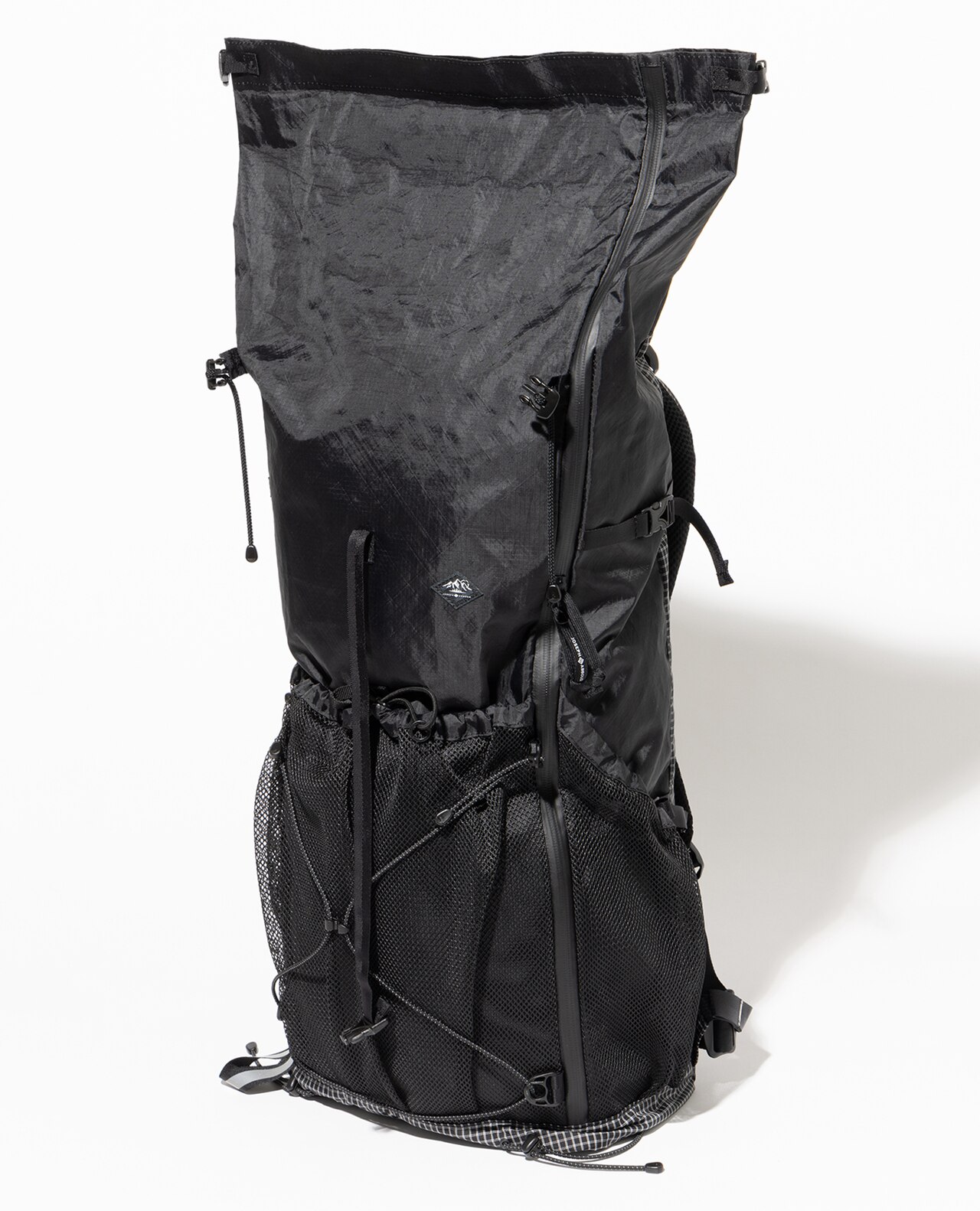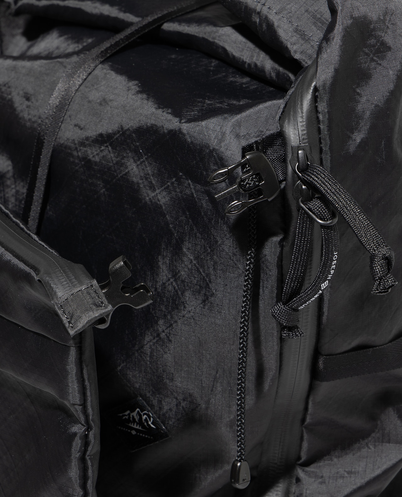 セットレース、カイトなどマリンスポーツ向けの高性能超軽量素材の盟主であるアメリカのCHALLENGE SAILCLOTH社の70dリップストップの生地をブラックのメイン、白い格子が織り込まれたUltra Gridをサブに使用。70dリップストップはより良いステッチ保持と優れた強度を備えています。100%リサイクルポリエステルを使用し、撥水加工にはC0 DWRのサスティナブル素材です。