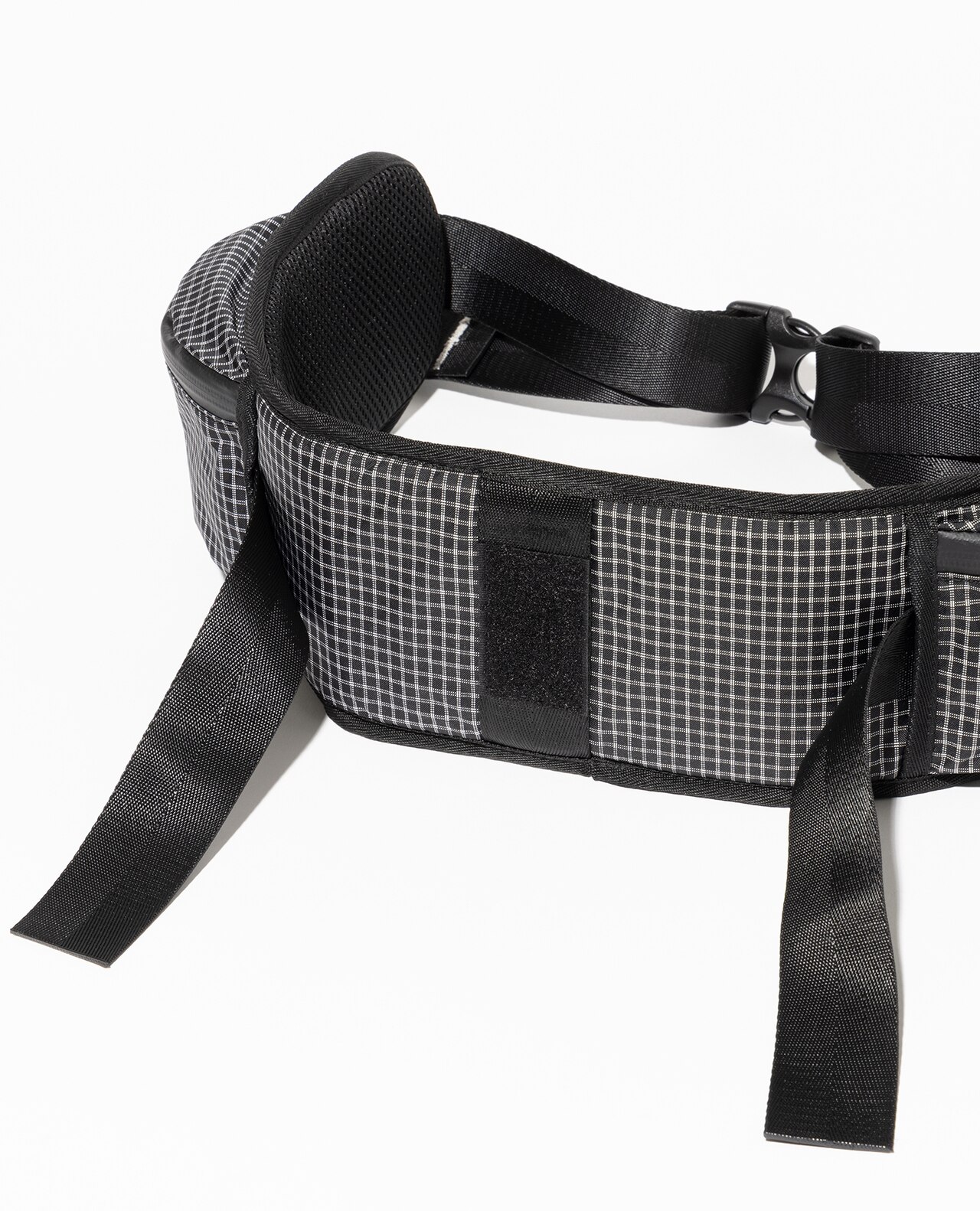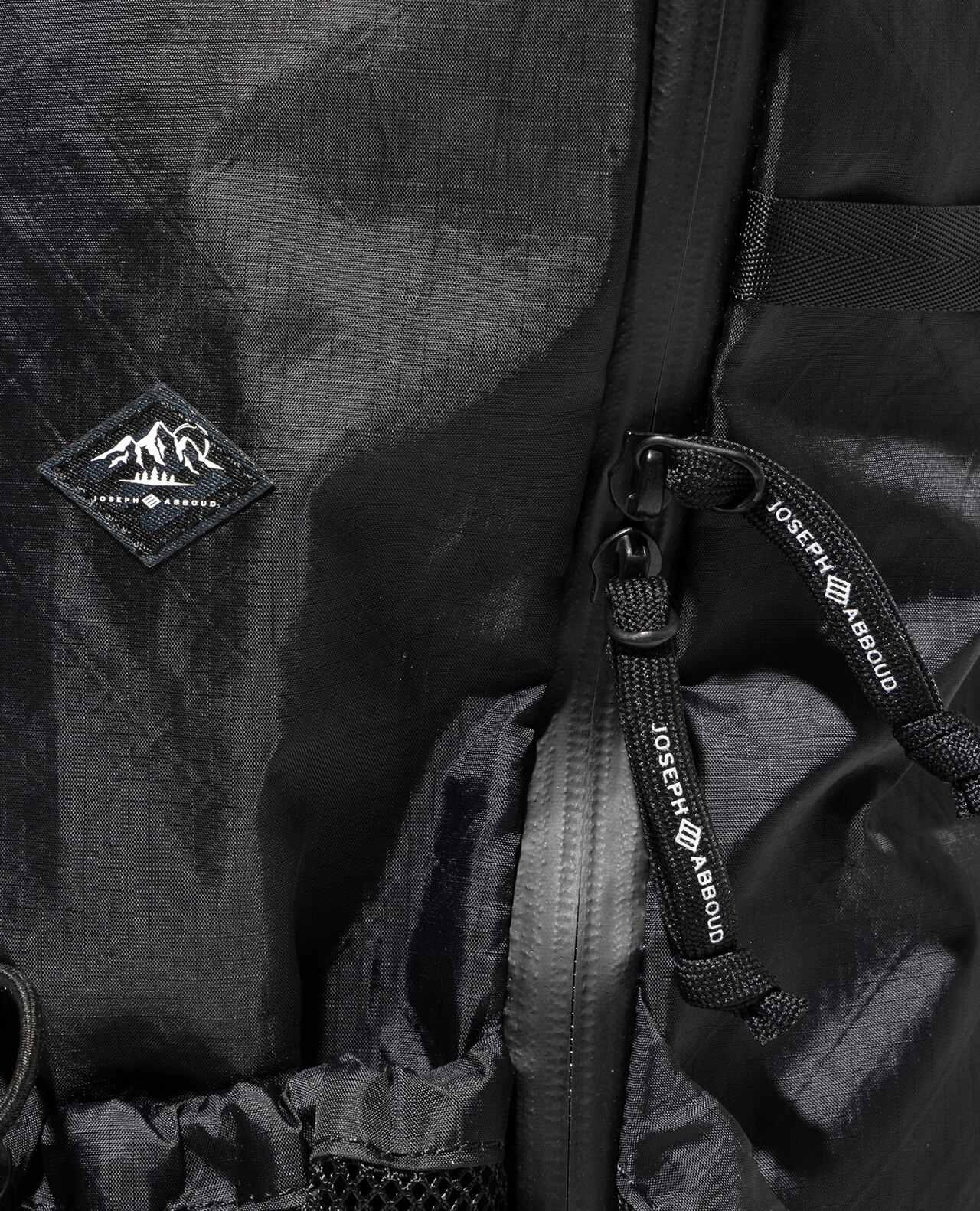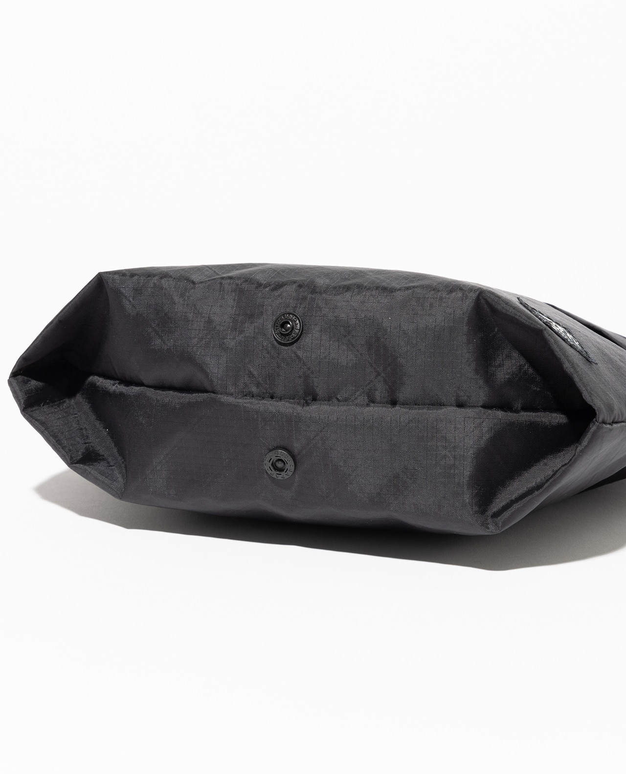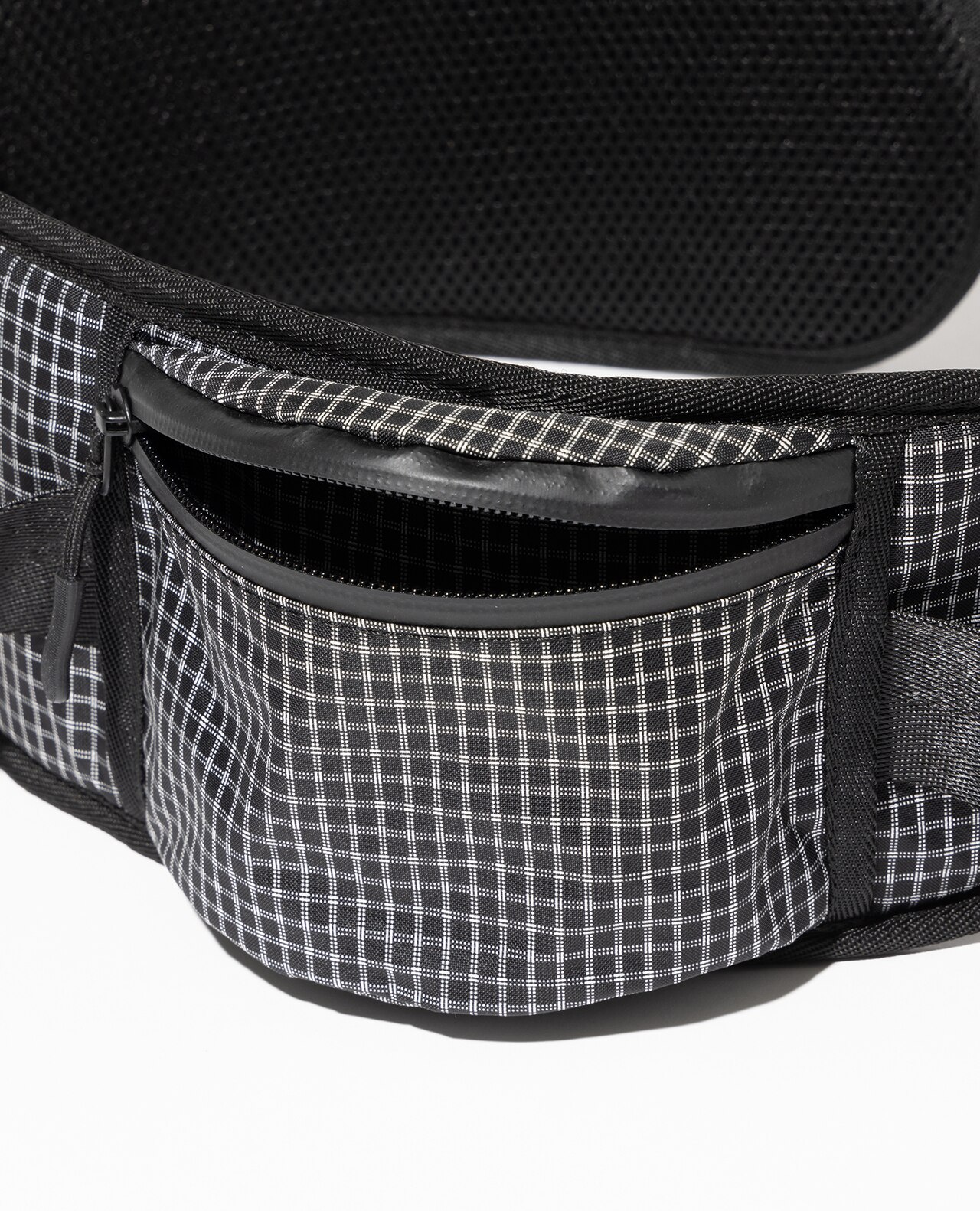 セットレース、カイトなどマリンスポーツ向けの高性能超軽量素材の盟主であるアメリカのCHALLENGE SAILCLOTH社の70dリップストップの生地をブラックのメイン、白い格子が織り込まれたUltra Gridをサブに使用。70dリップストップはより良いステッチ保持と優れた強度を備えています。100%リサイクルポリエステルを使用し、撥水加工にはC0 DWRのサスティナブル素材です。