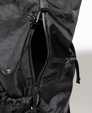 右サイドを走るジッパーがフルオープンする仕様。大容量バックパックにありがちな底面部の取り出しにくさを解消しました。
