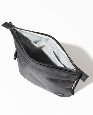 フロントに装着された外付けポーチは取り外してサコッシュとしても使用可能。登山で手元に置きたい行動食や地図を入れたり、旅先で貴重品を入れて身軽に行動したりと重宝します。