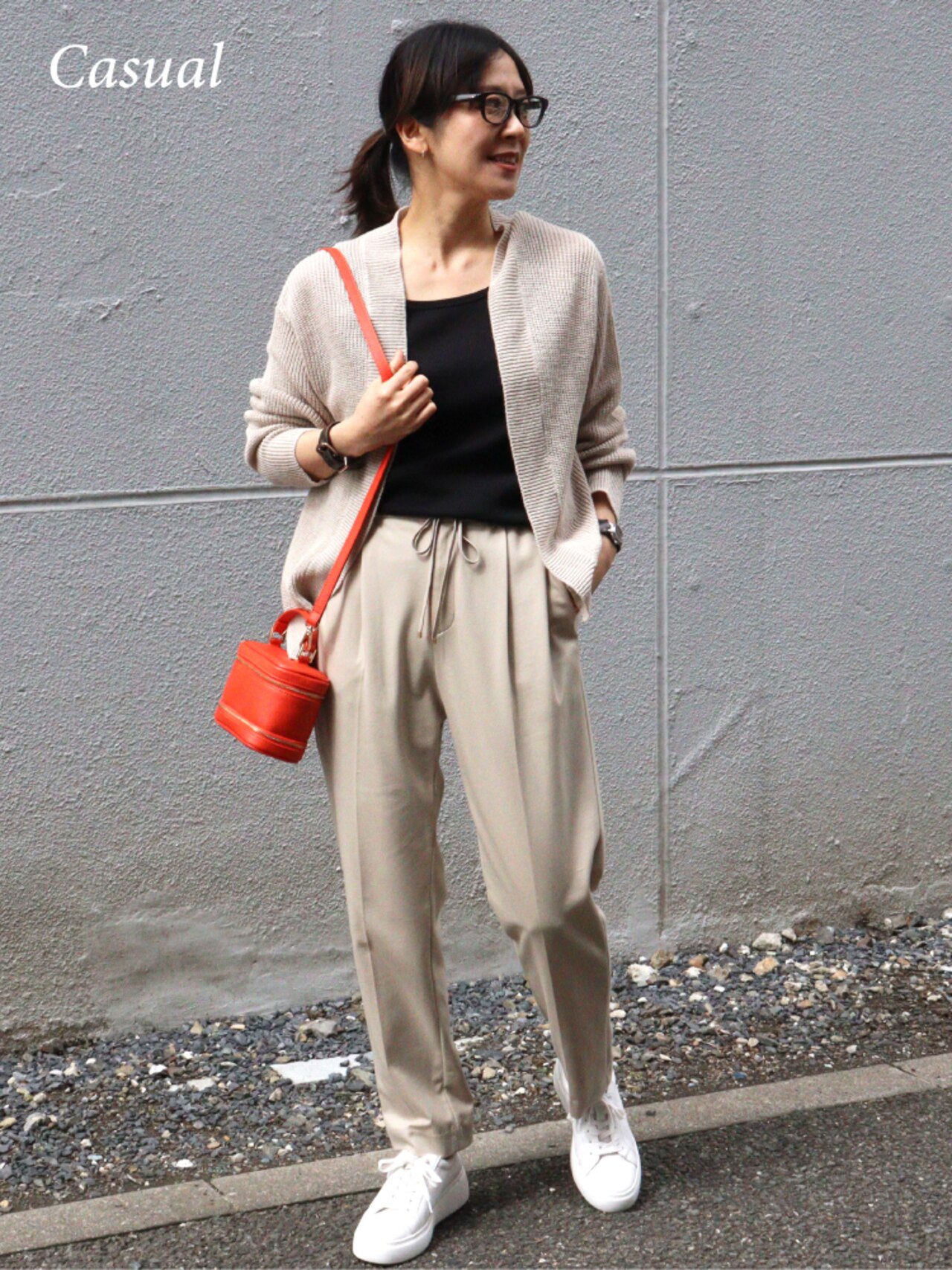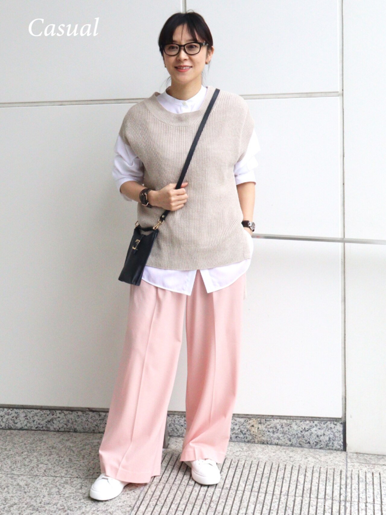 ワイドパンツをレイヤードスタイルで旬に見せる