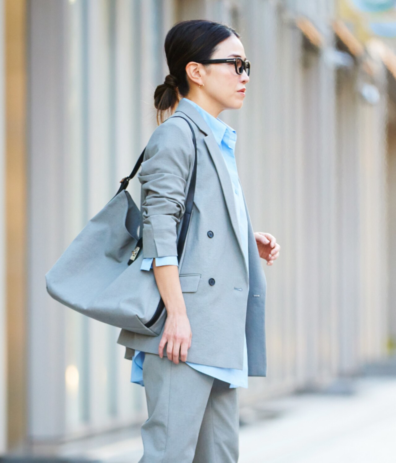 モスグレー×ブルーの色合わせが新鮮なONスタイル