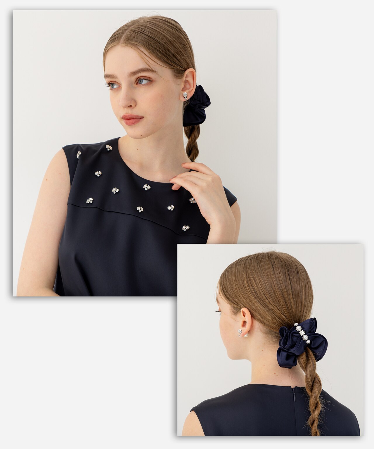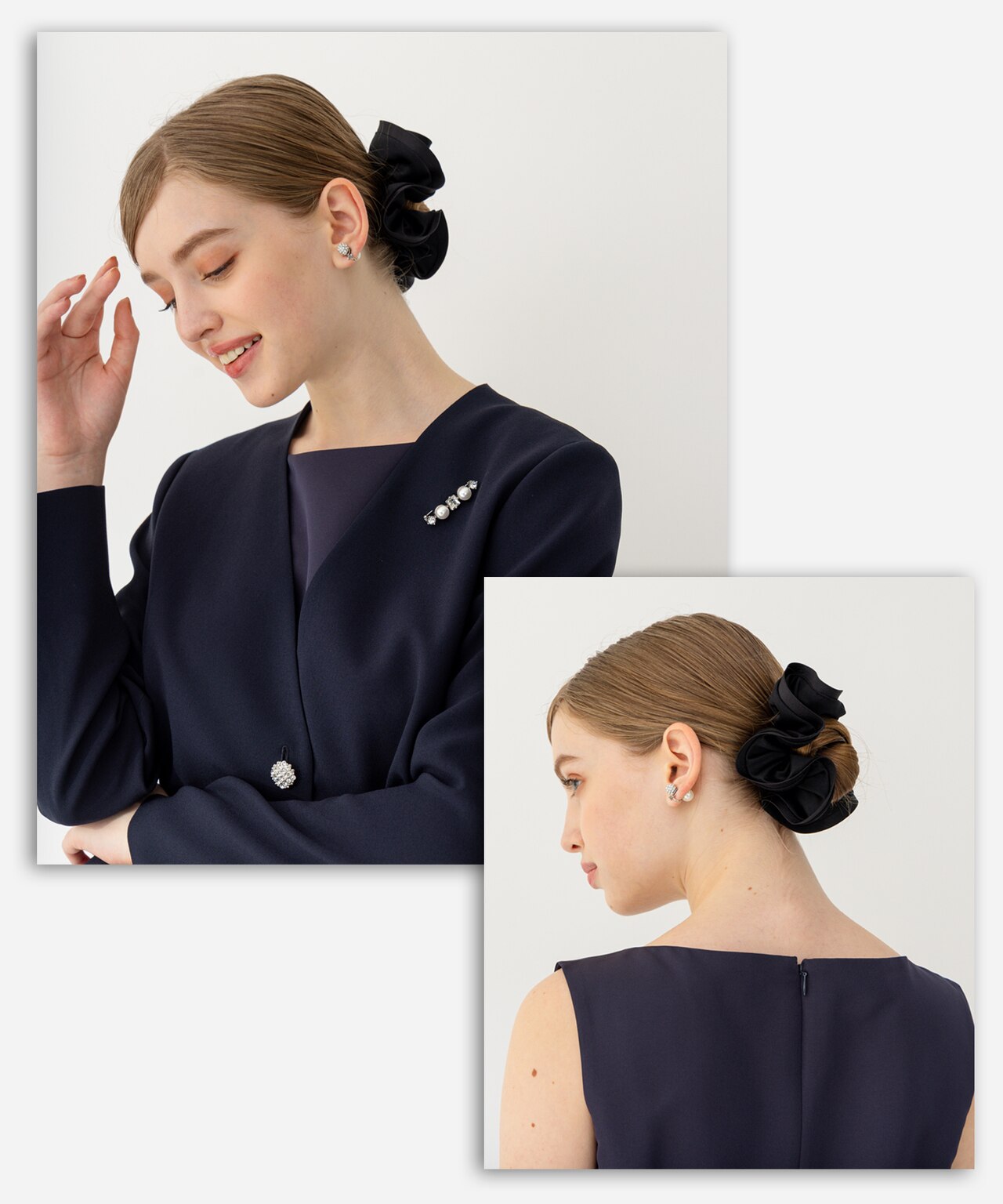 程よいボリューム感の大人シュシュとブローチのセット。【VERYコラボ】シュシュ&ブローチ2点セット【VERYコラボ】シュシュ&ブローチ2点セット¥9,900(税込)→¥5,940(税込) -