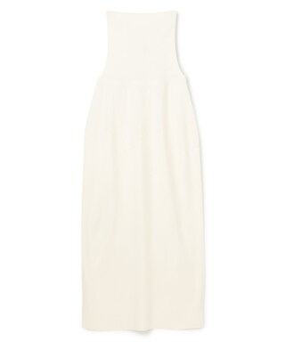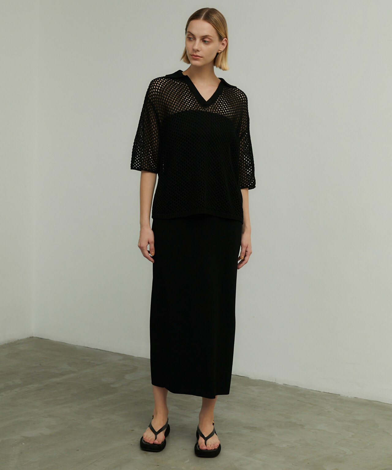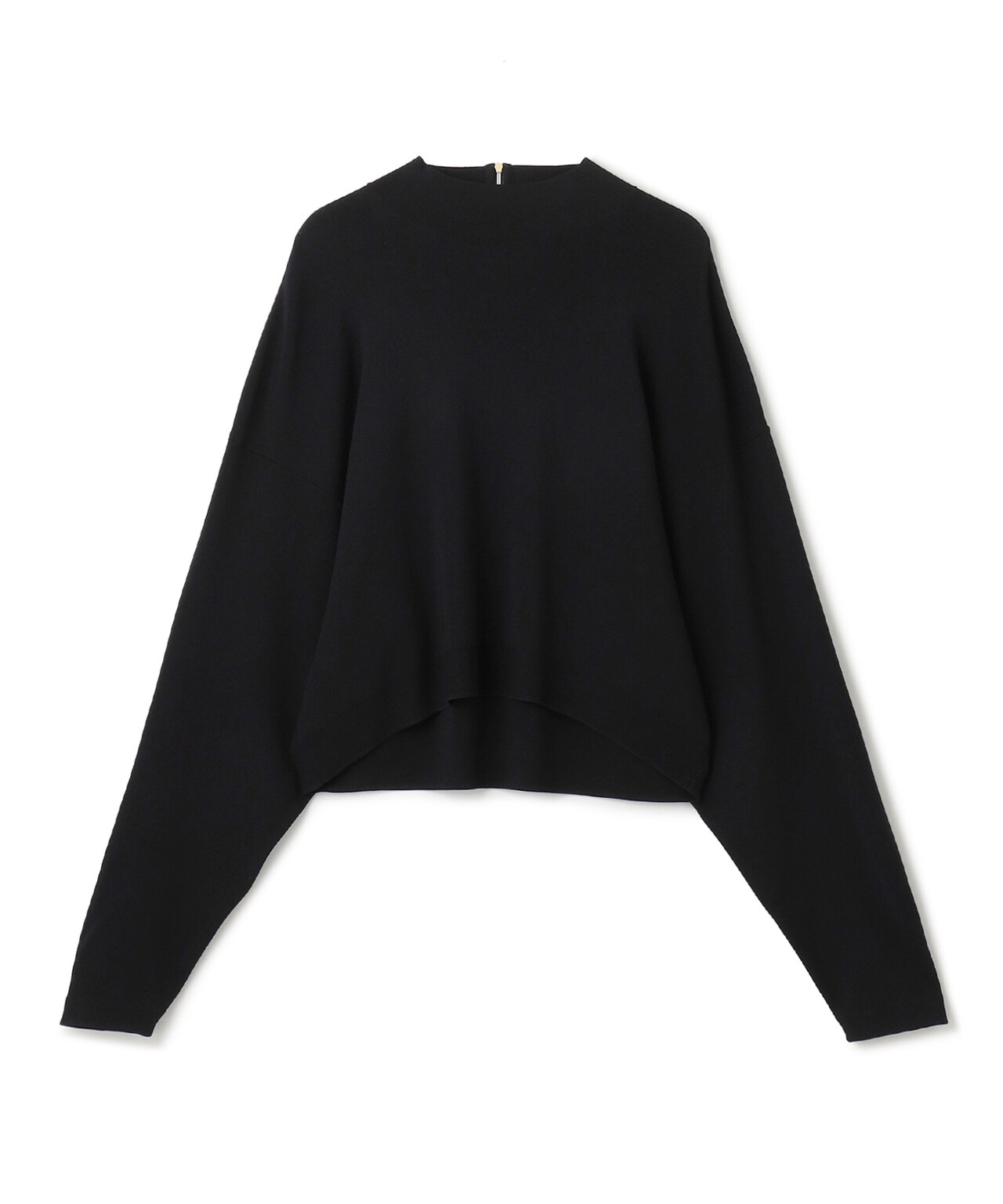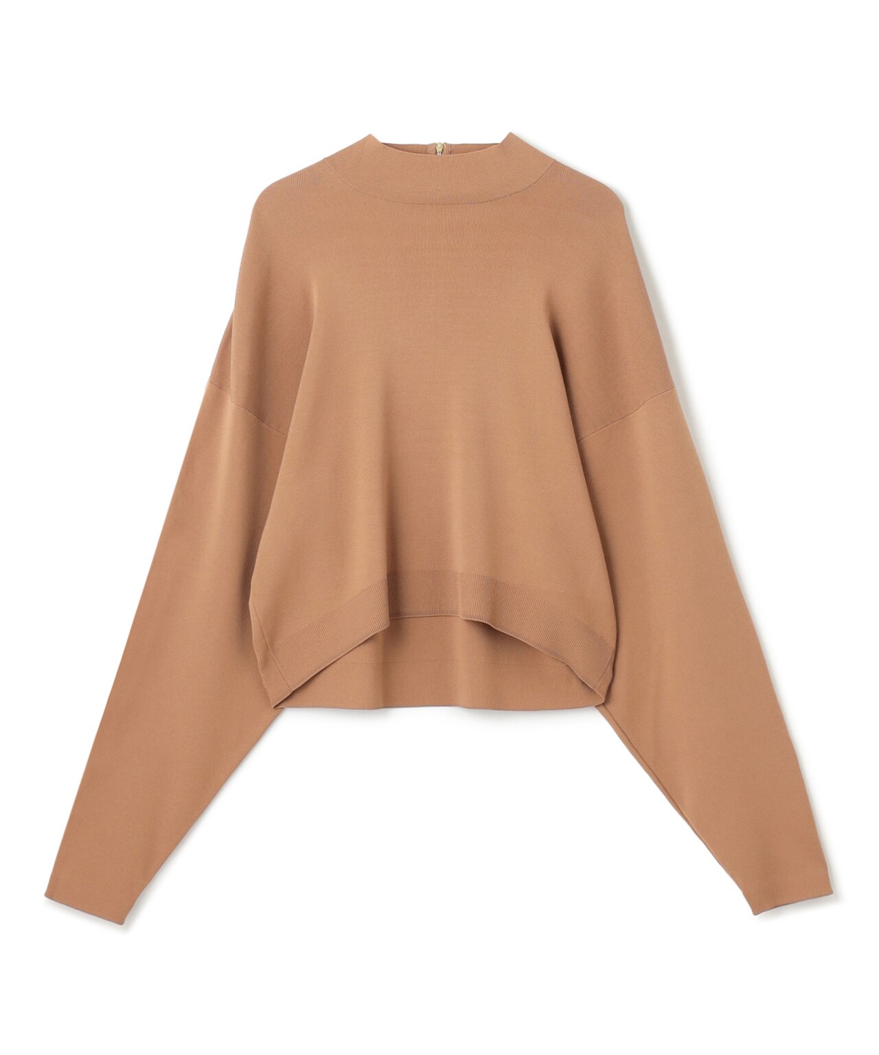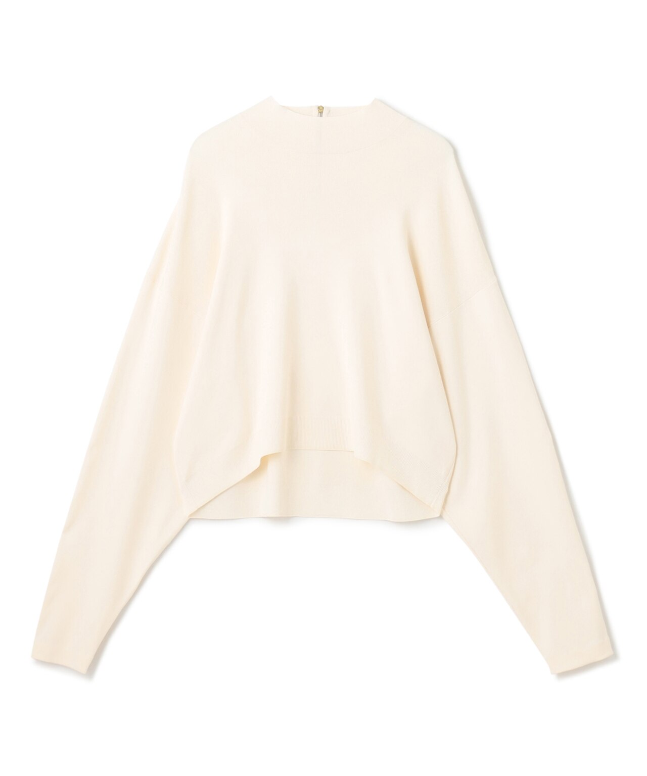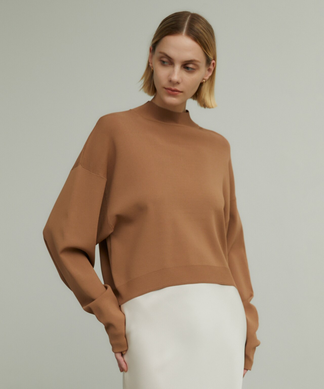 少し短めのクロップド丈ニット。とろみ感のあるロングスカートと合わせれば、女性らしい大人の雰囲気を演出。