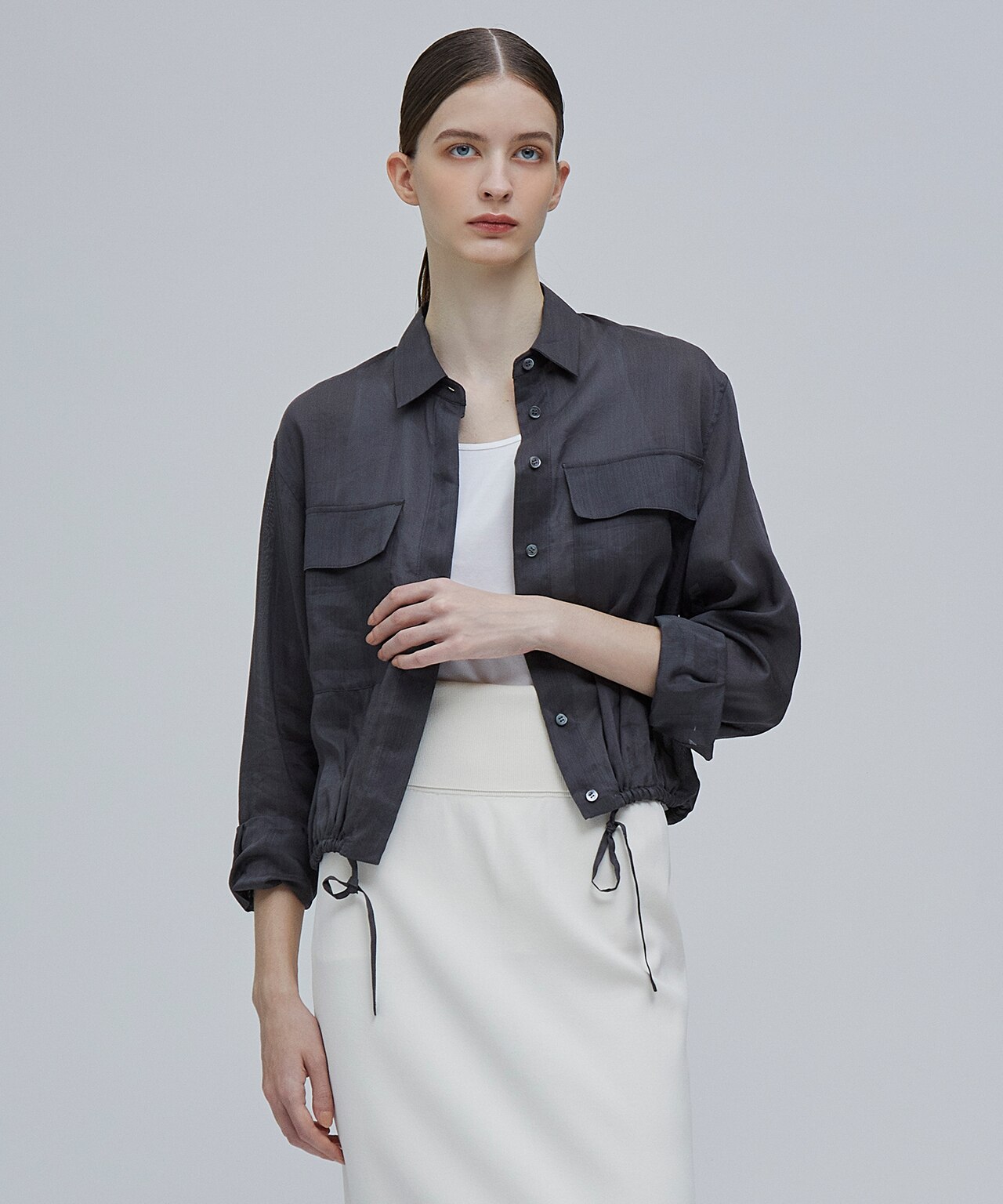 ショート丈とドロストでニュアンスのある着こなしが叶うシャツブラウス。ヘルシーインナーと合わせて1枚着や羽織りとしてもロングシーズン着まわせるアイテム。